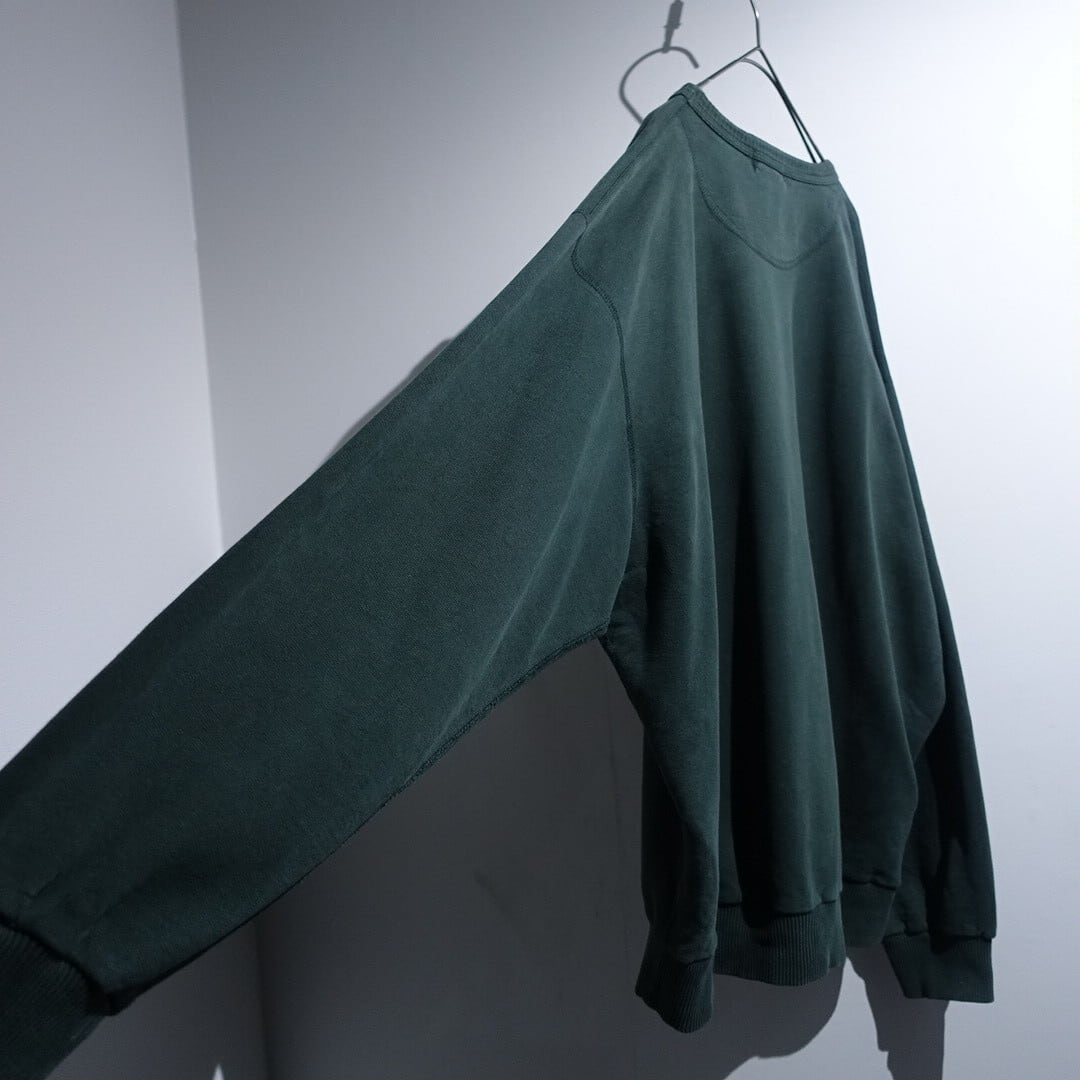 90s “NON-FICTION”Fade Green Emblem Embroidered Design Sweat