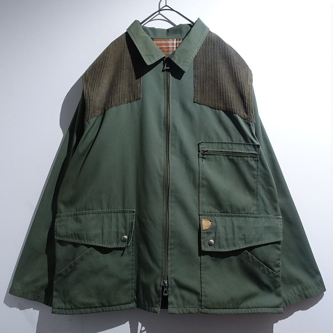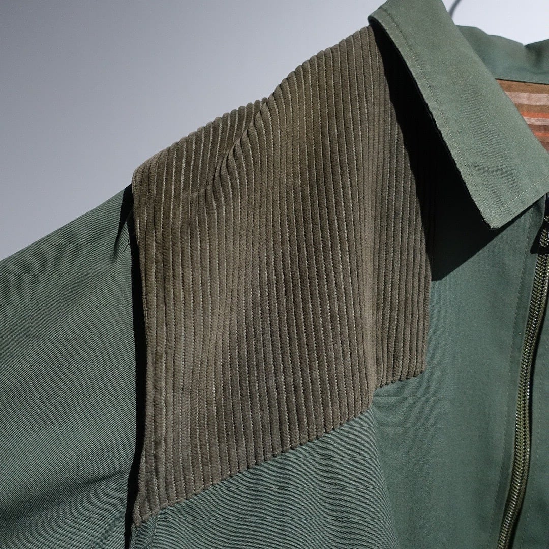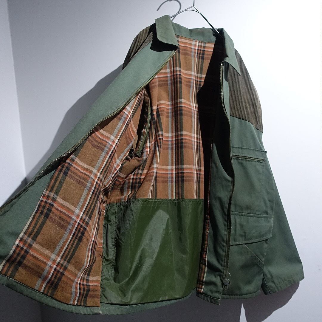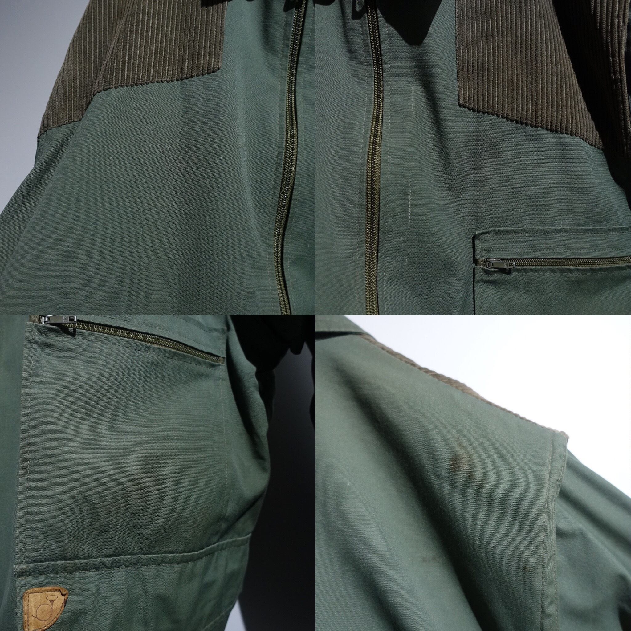 70s EURO “ANLANTEX” Green Corduroy Switching Detachable Double Zip Hunting Jacket