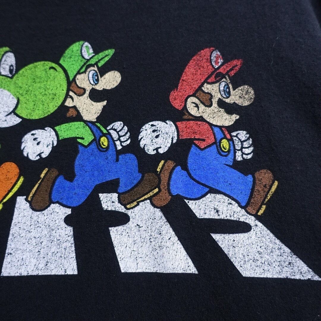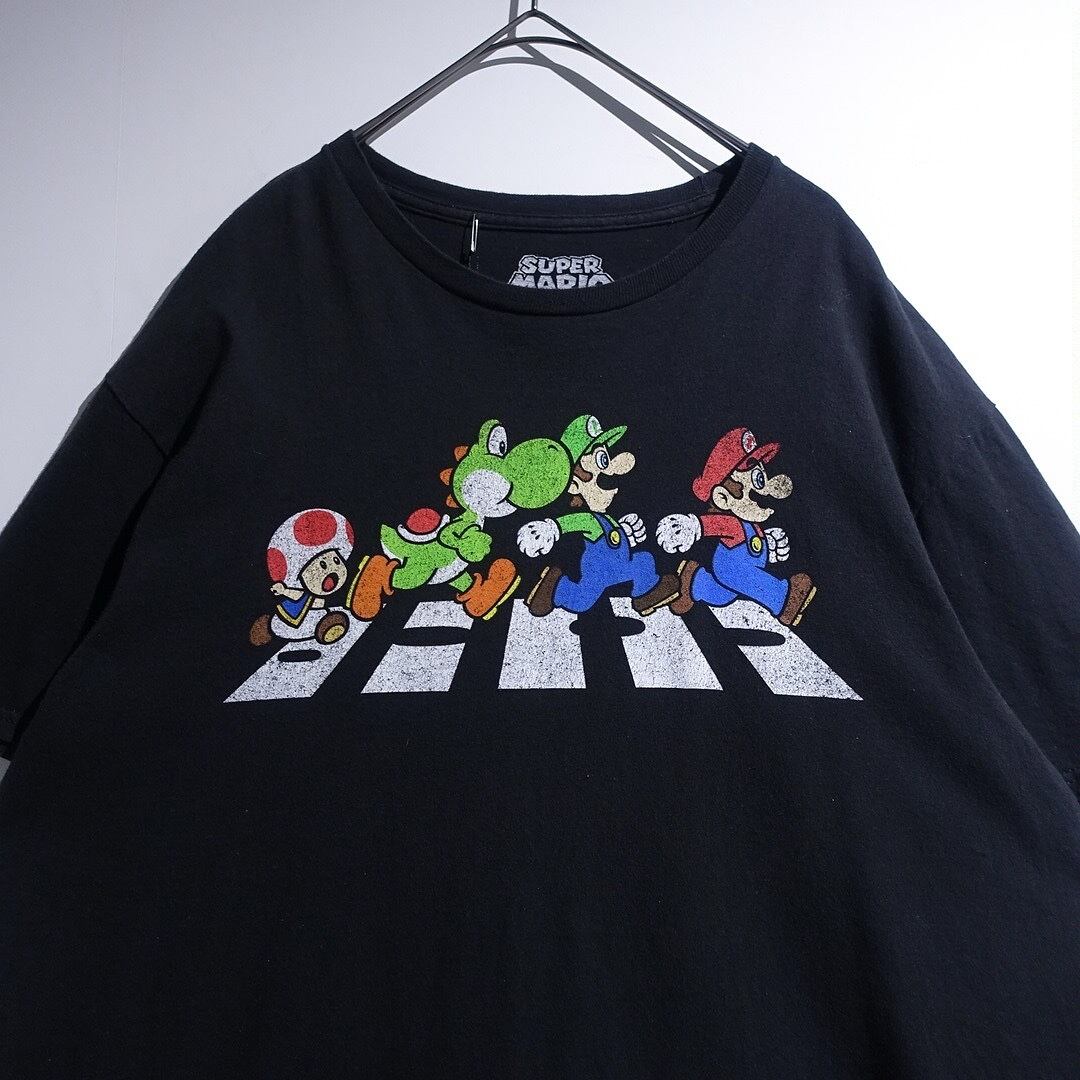 "SUPER MARIO" Black THE BEATLES ABBEY ROAD Homage Print Design T-Shirt