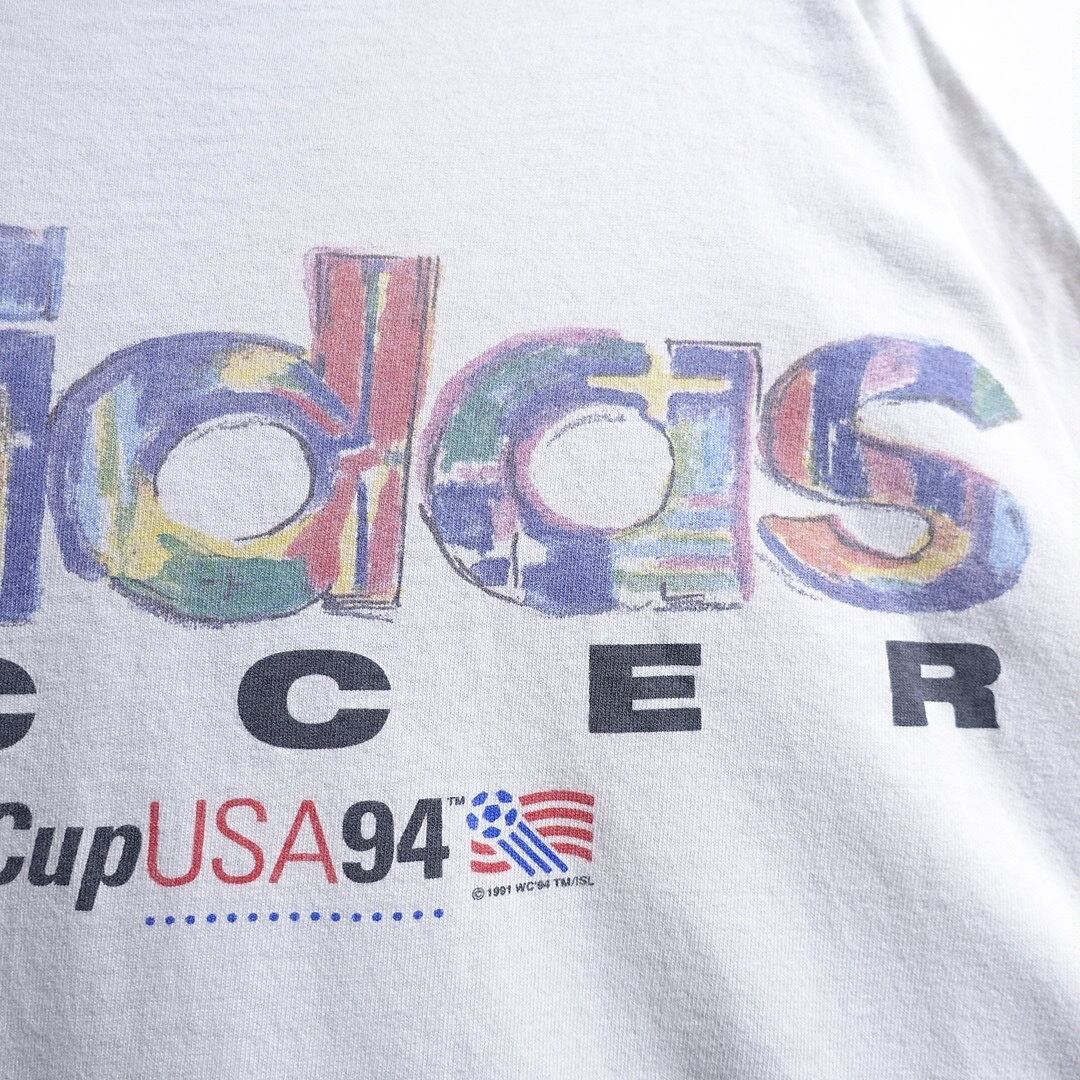 90s “adidas” White World Cup USA94 Artistic Print Design T-Shirt