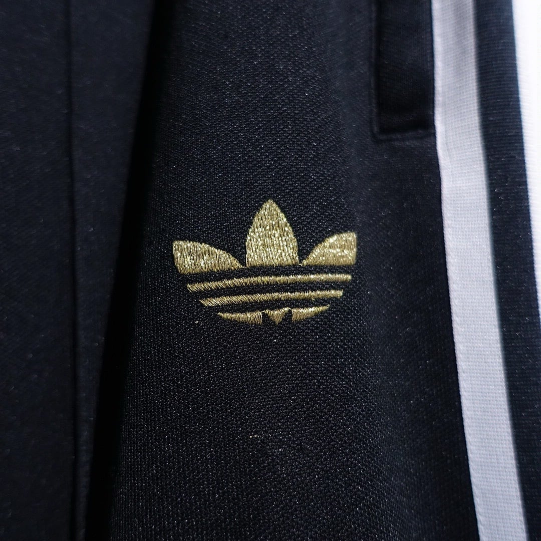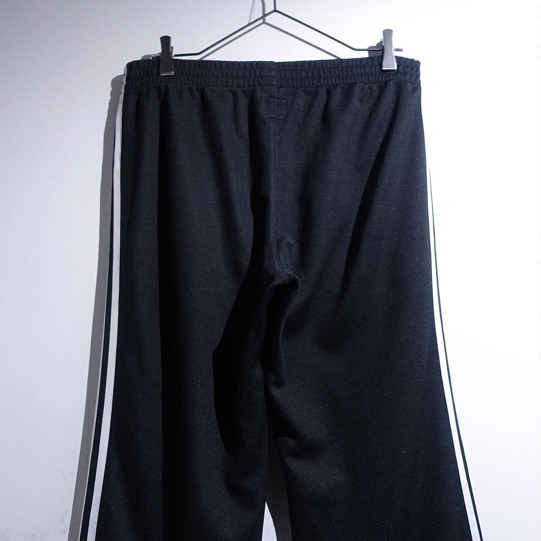 00s “adidas” Black Logo & 3-Stripe Side Zip Design Flare Track Pants