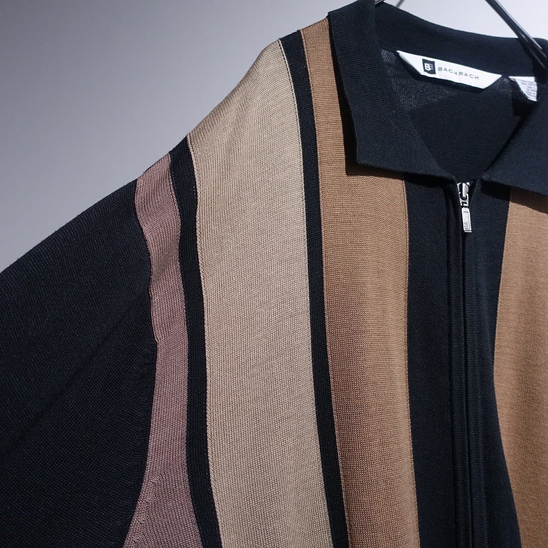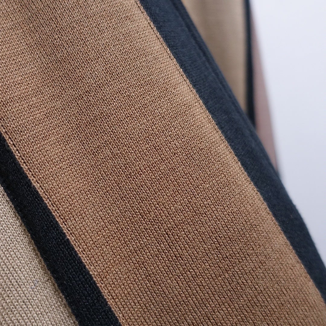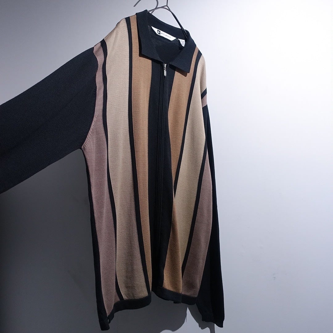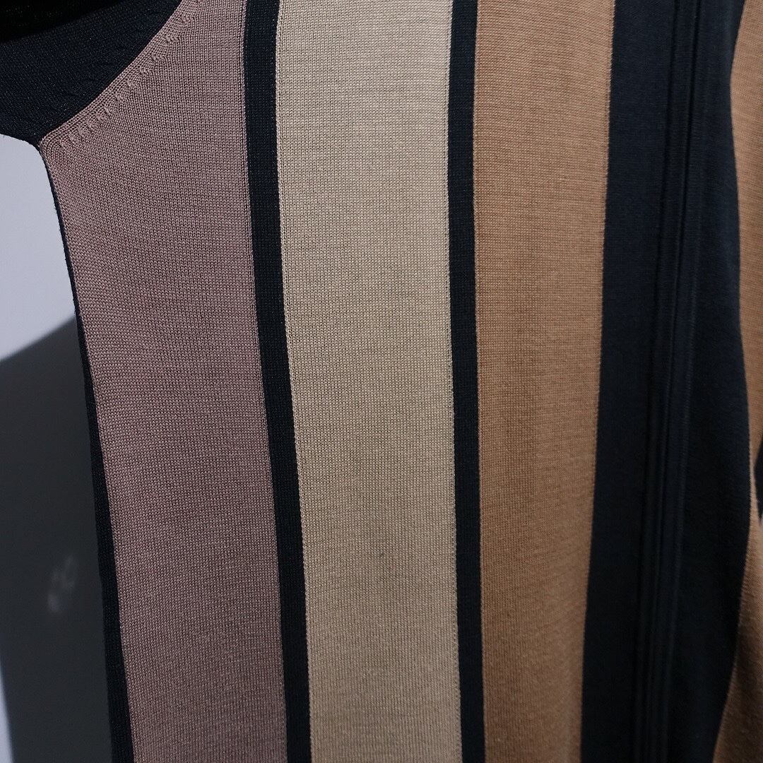 Black Line Switching Design Full Zip Silk & Cotton Summer Knit