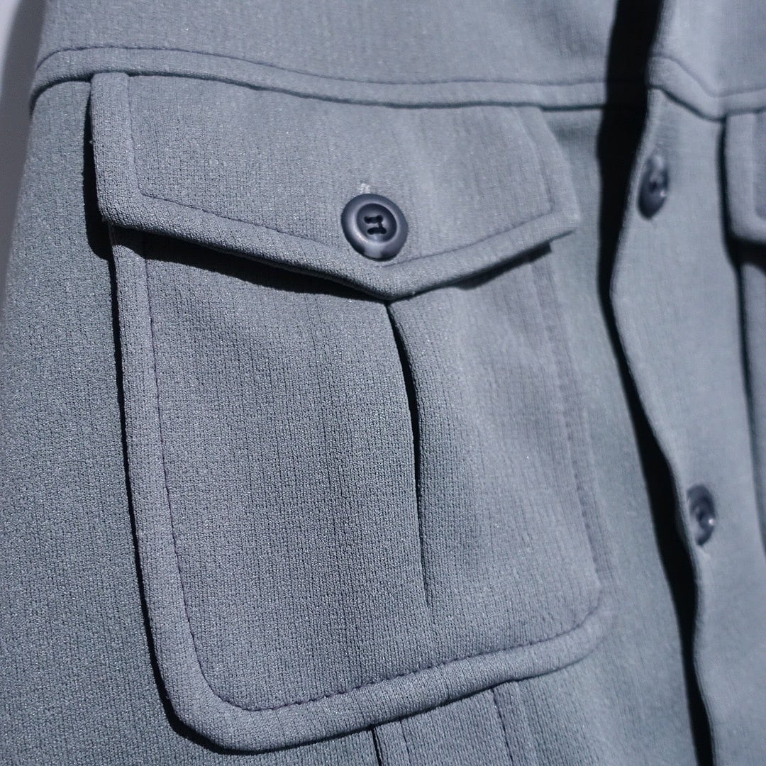 70s Grey Double Pocket Large collar Design Poly Jacket