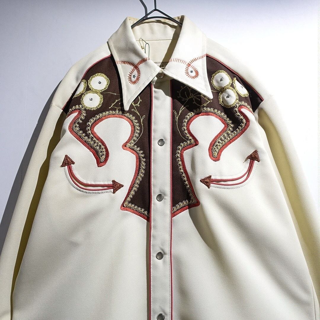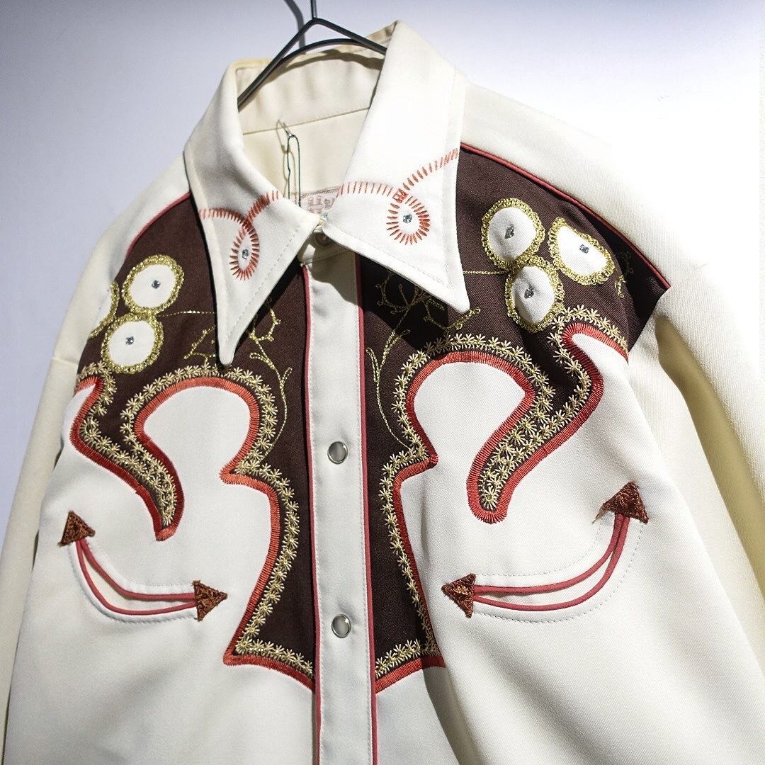 70s “H BAR C” Ivory Embroidered Design Western Shirt