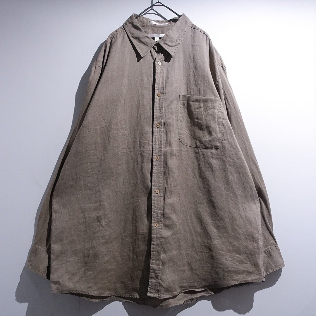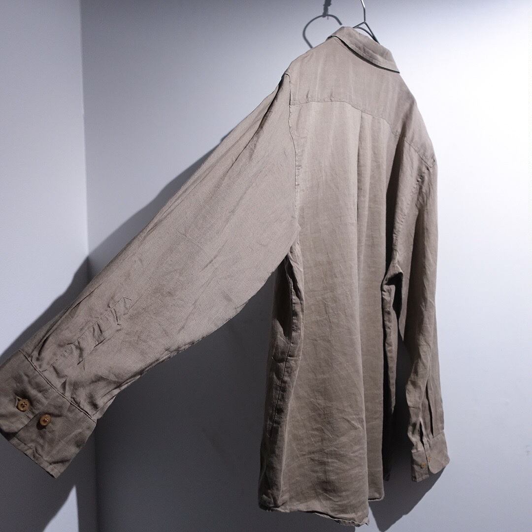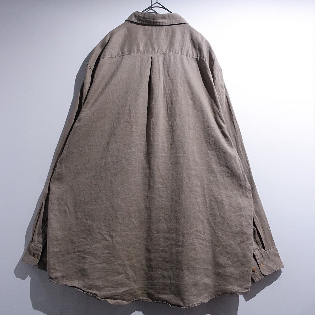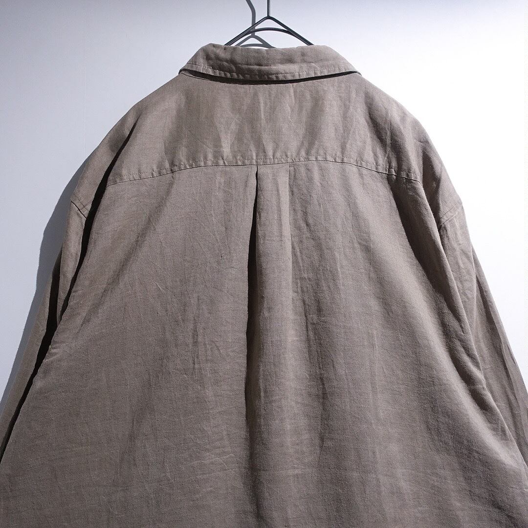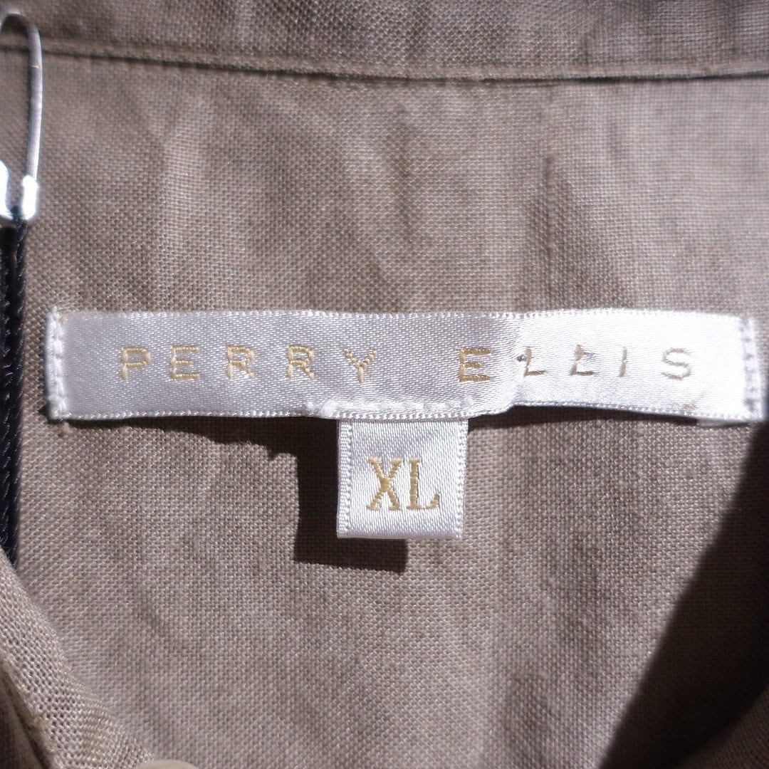 90s “PERRY ELLIS” Light Brown Linen Shirt