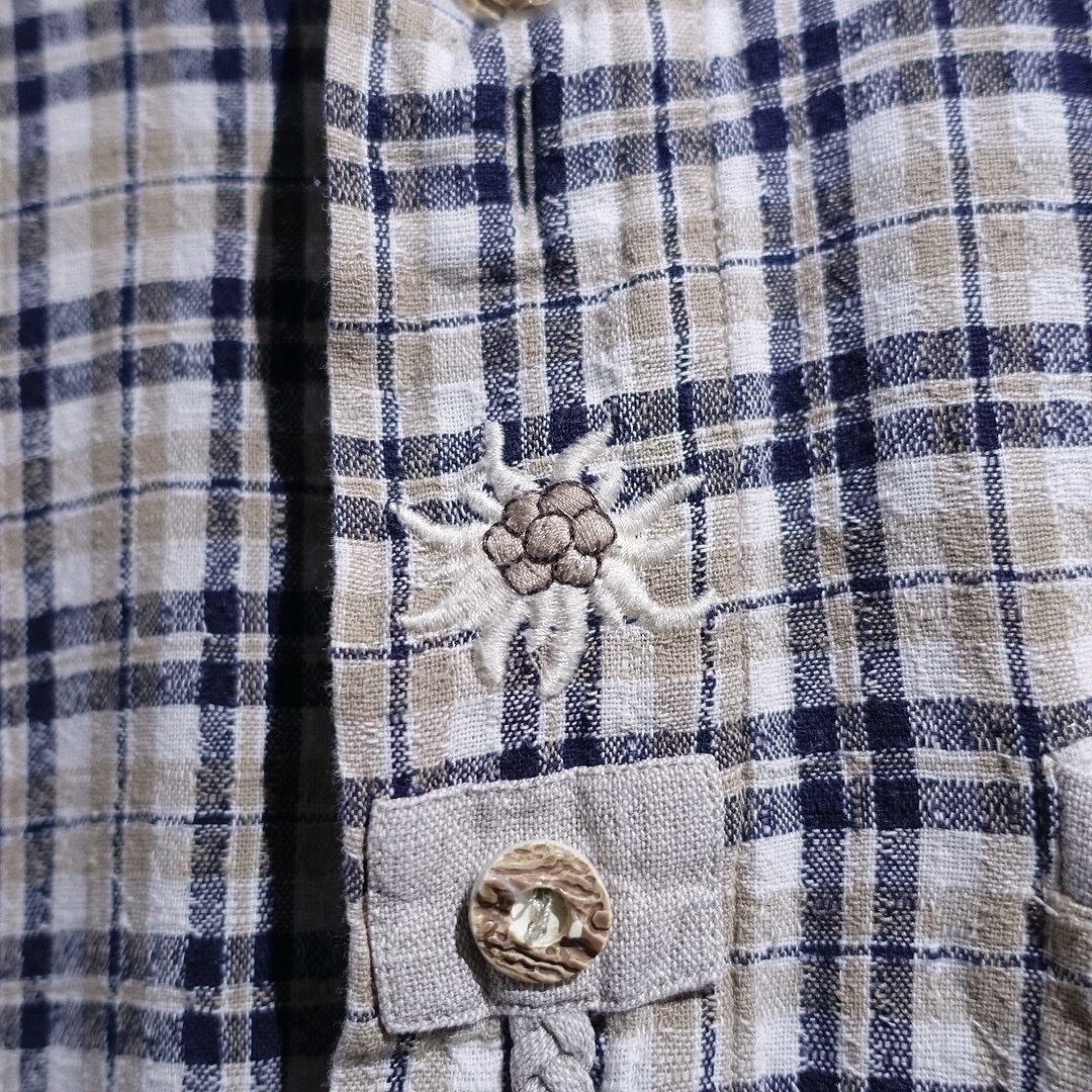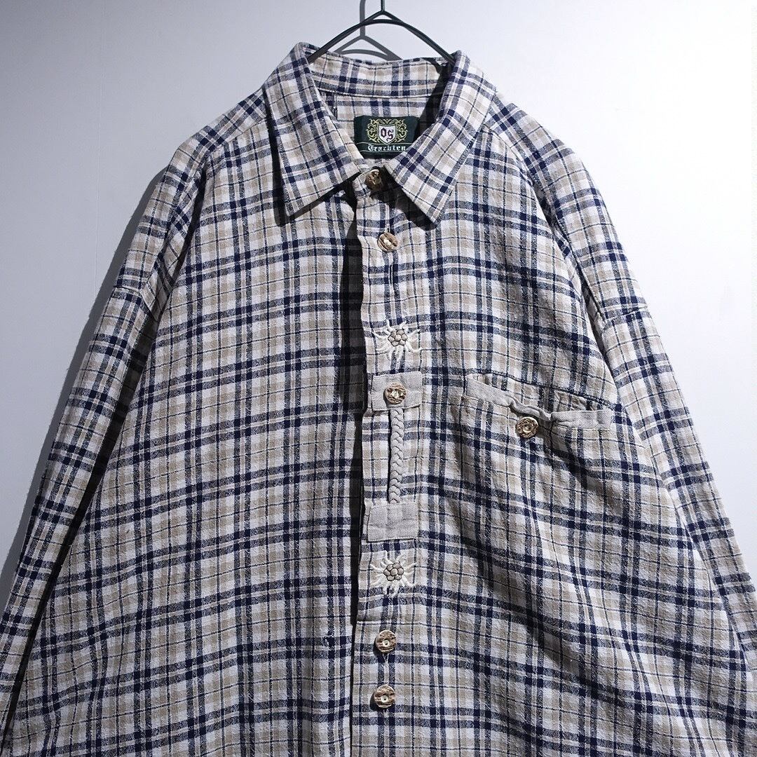 EURO Multicolor Flower Motif Design Check Tyrolean Shirt