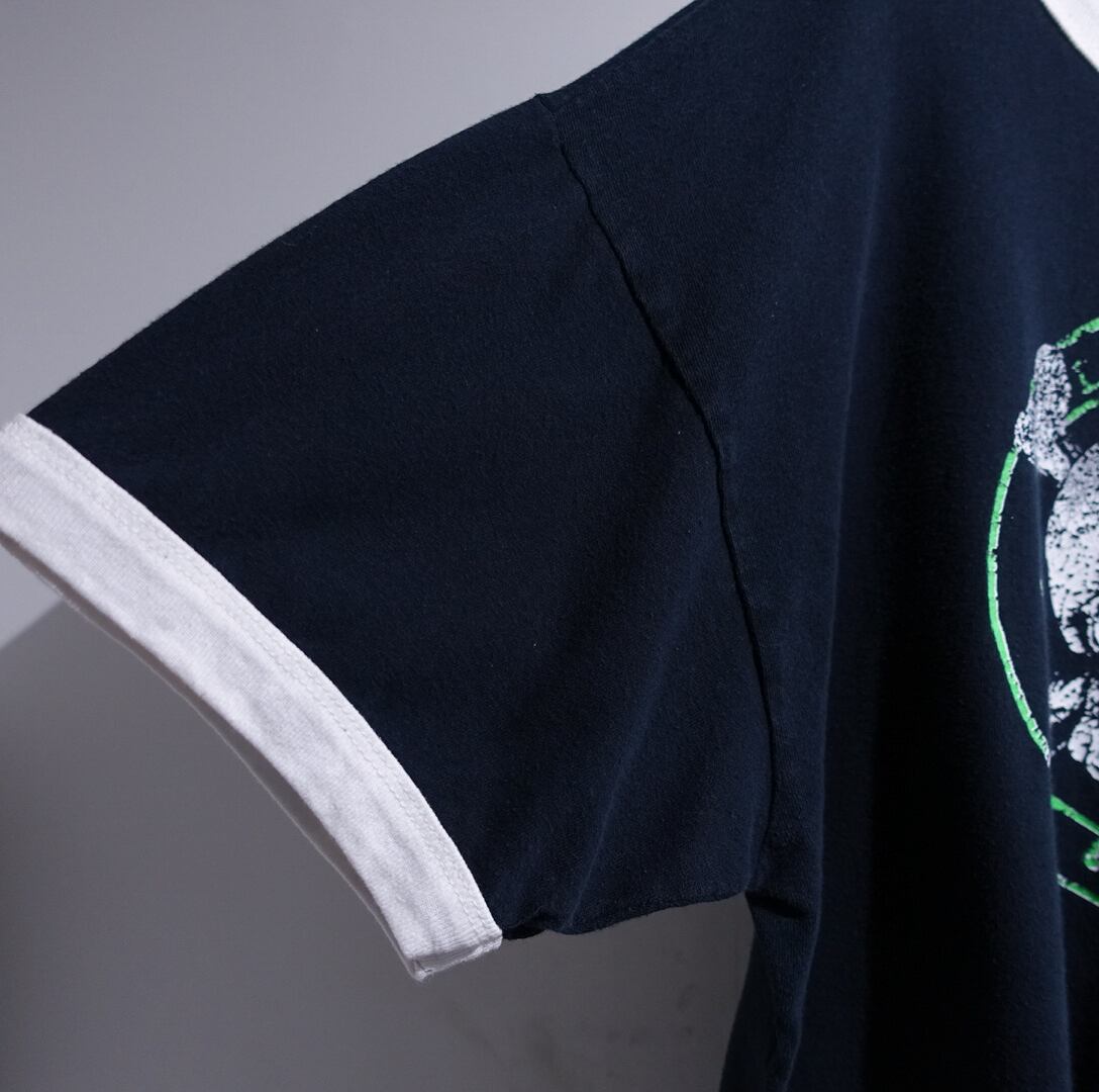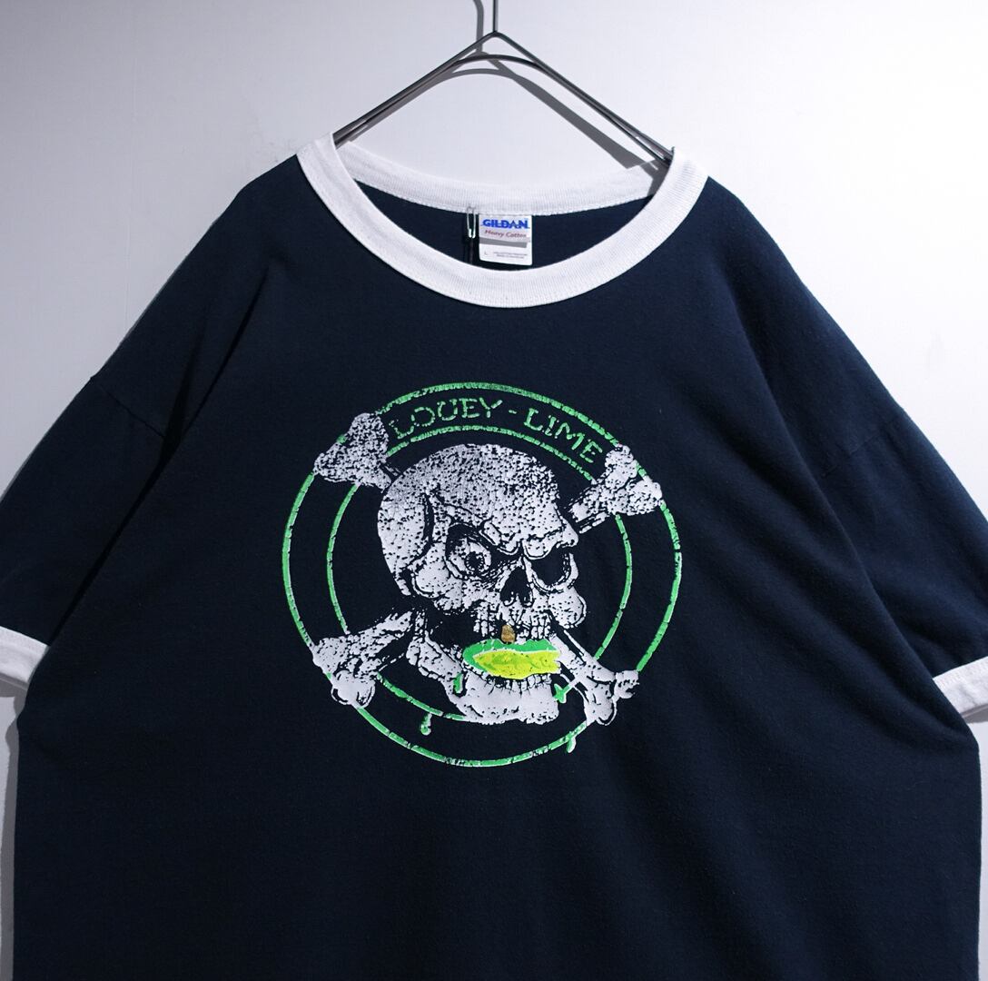Black x White Skull Lime Print Design Ringer T-Shirt