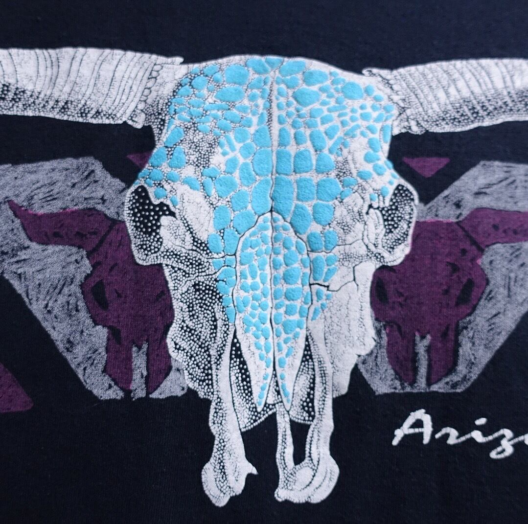 90s Black Bison Skull Foam Print Design T-shirt