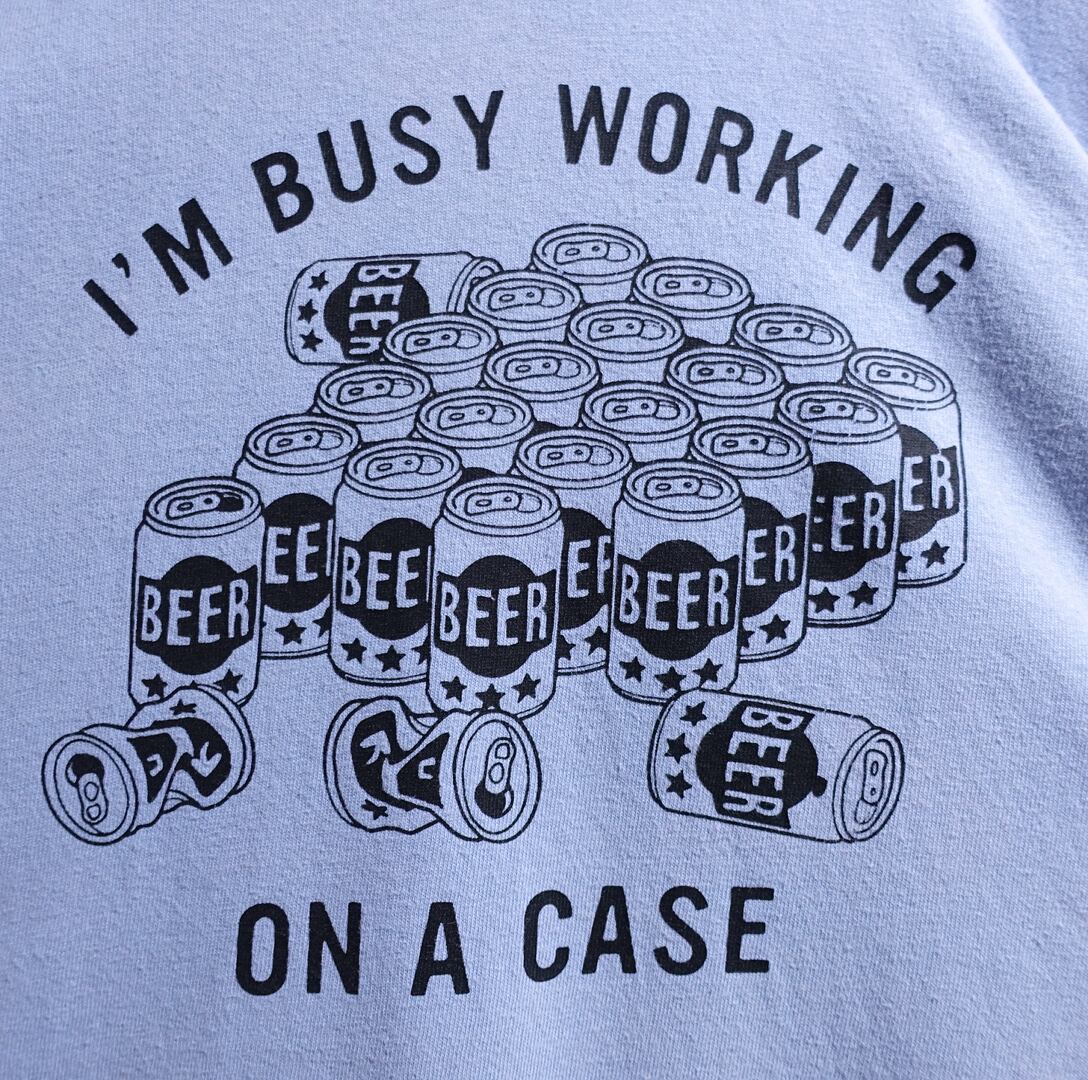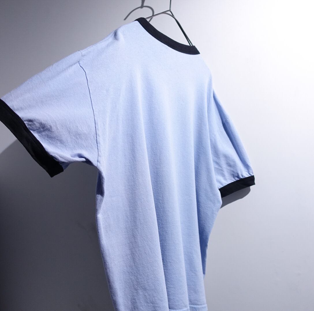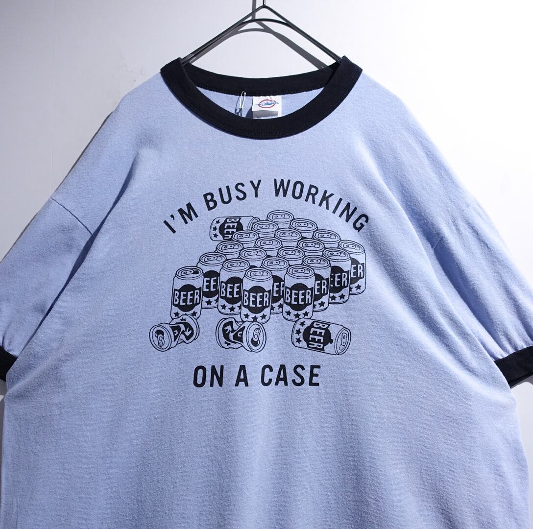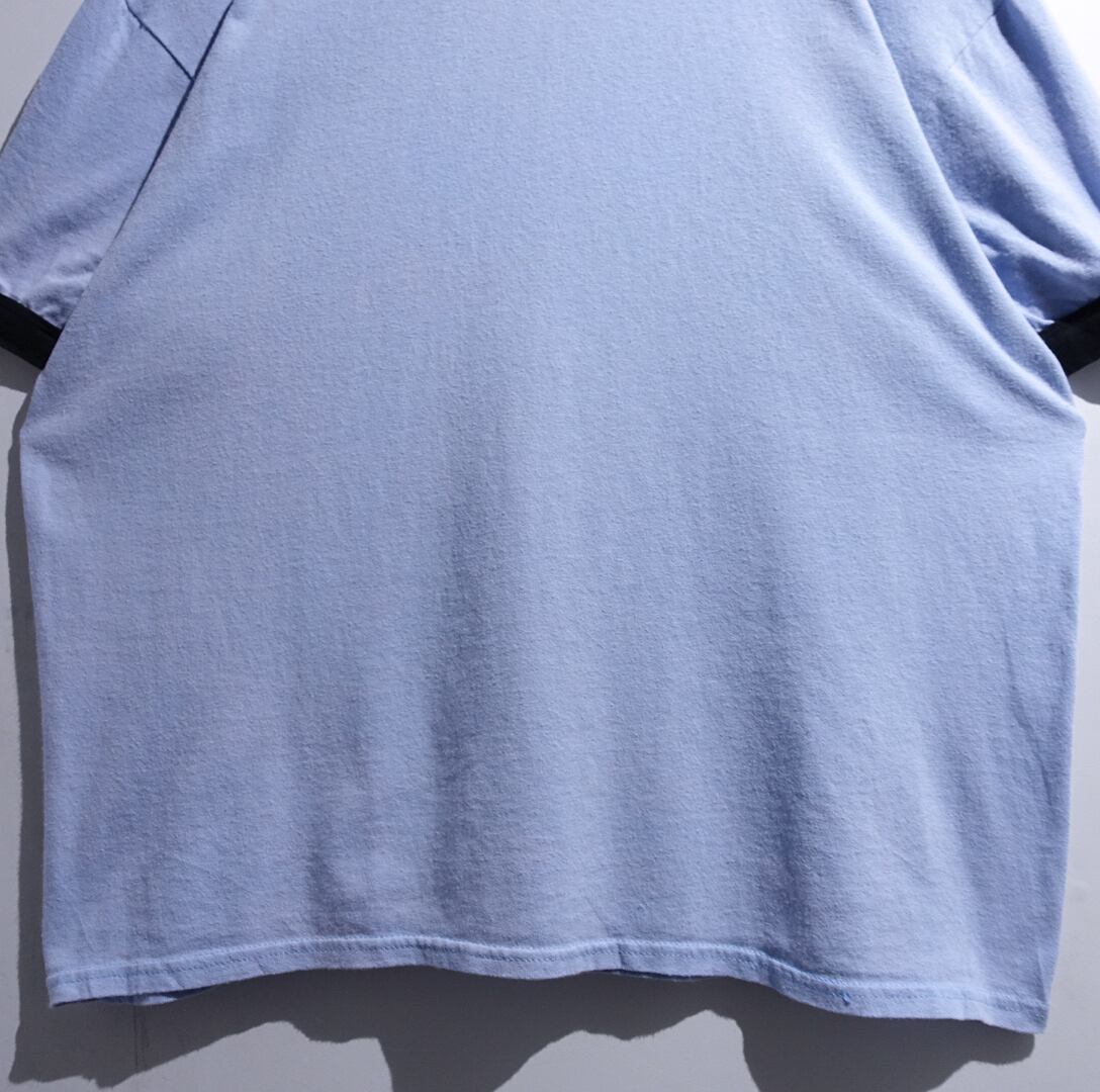 Light Blue x Black Beer Print Design Ringer T-Shirt