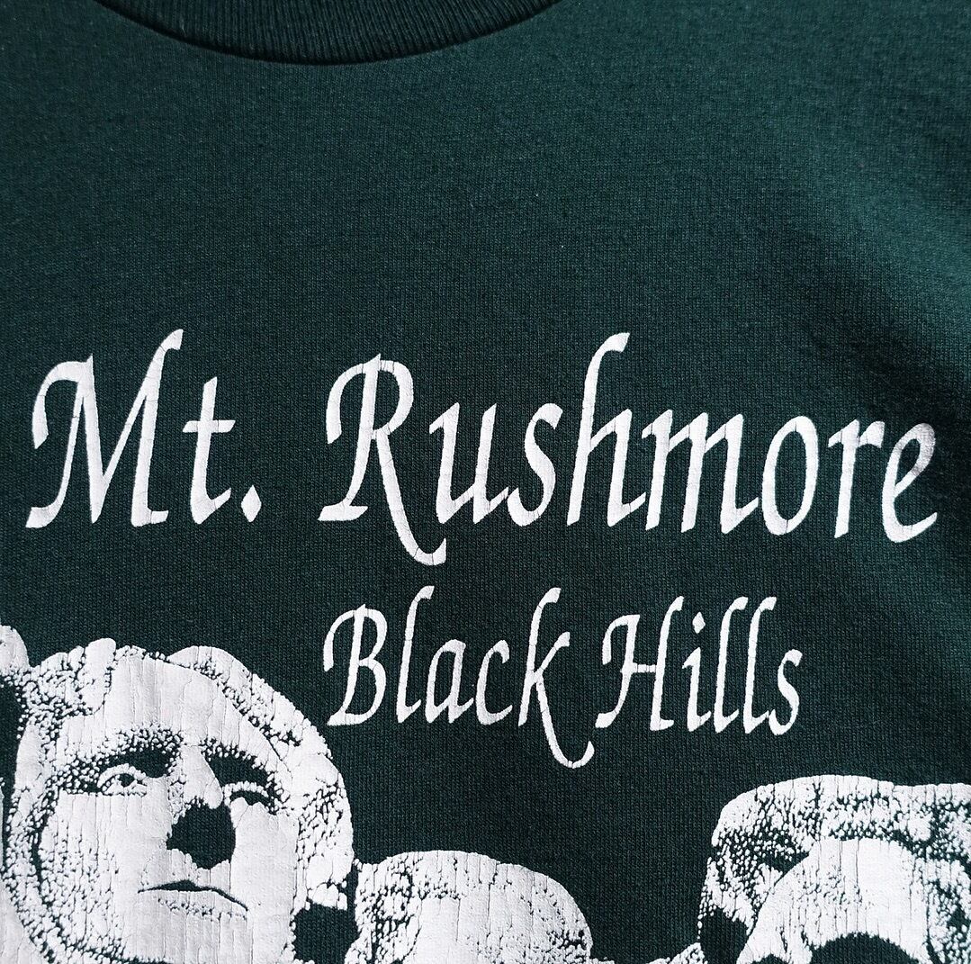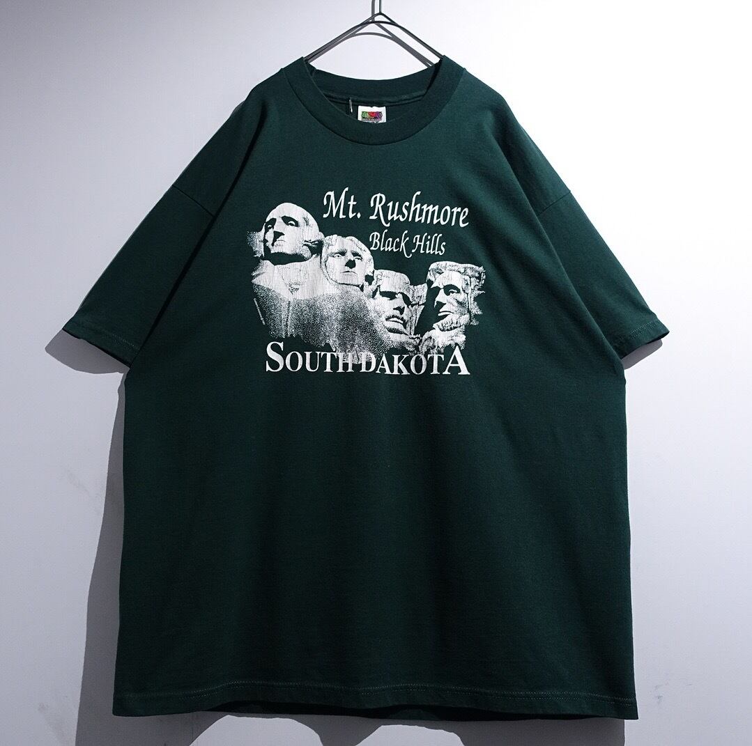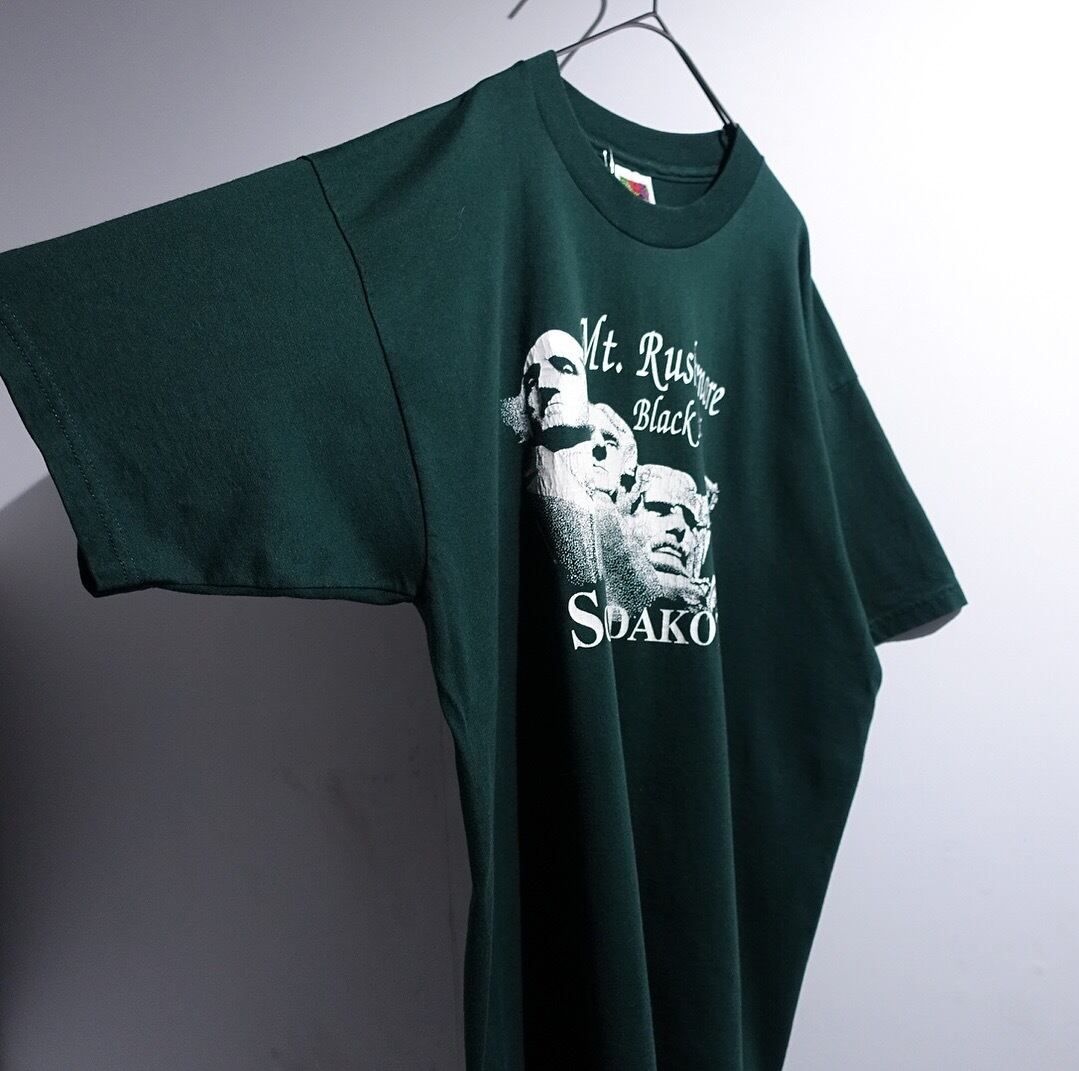 90s “FRUIT OF THE LOOM” Green Mount Rushmore Print Design T-Shirt