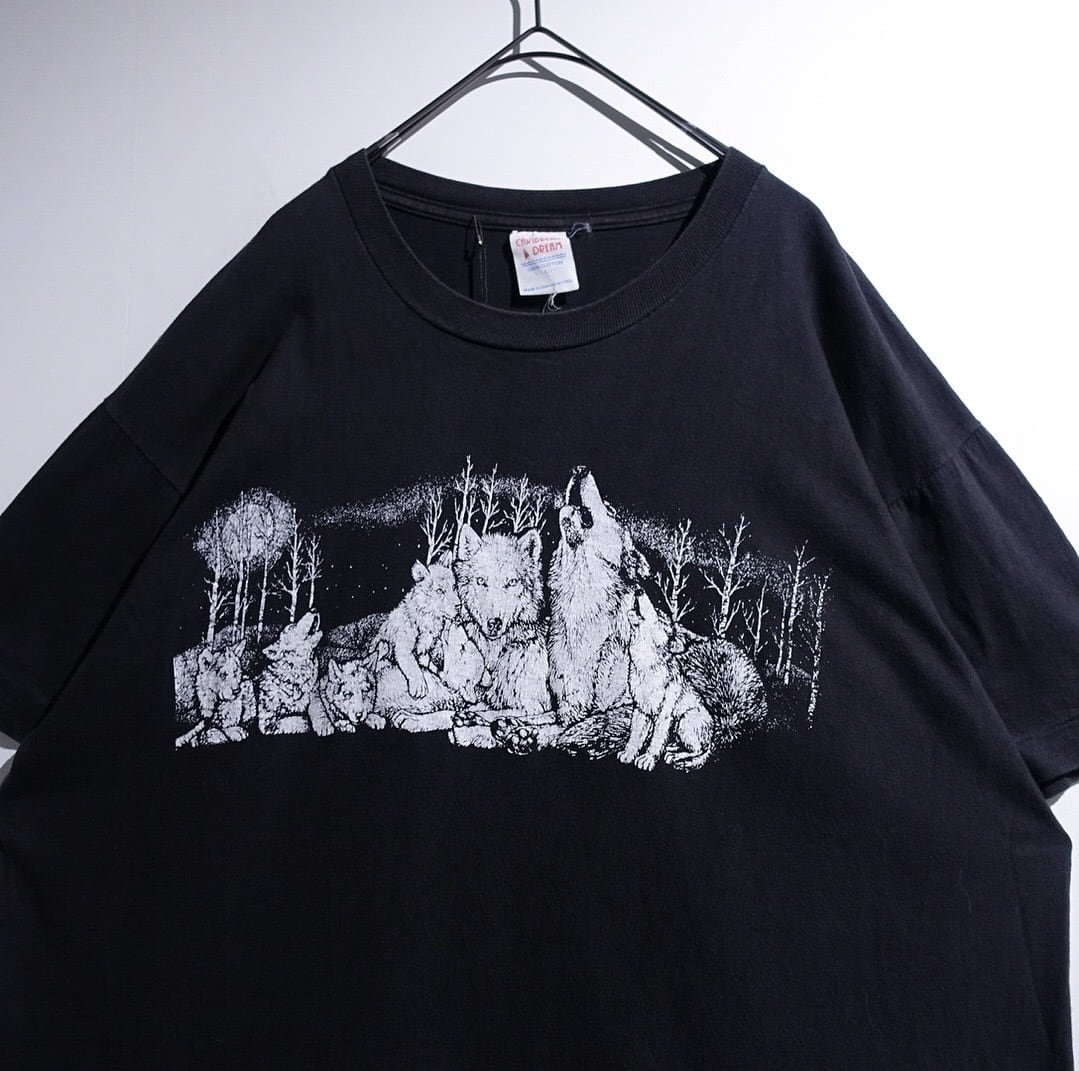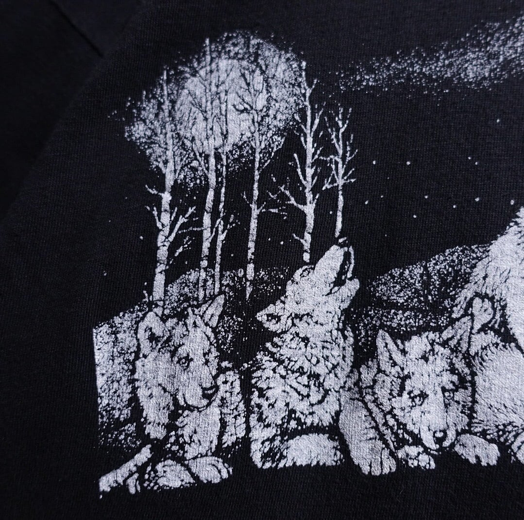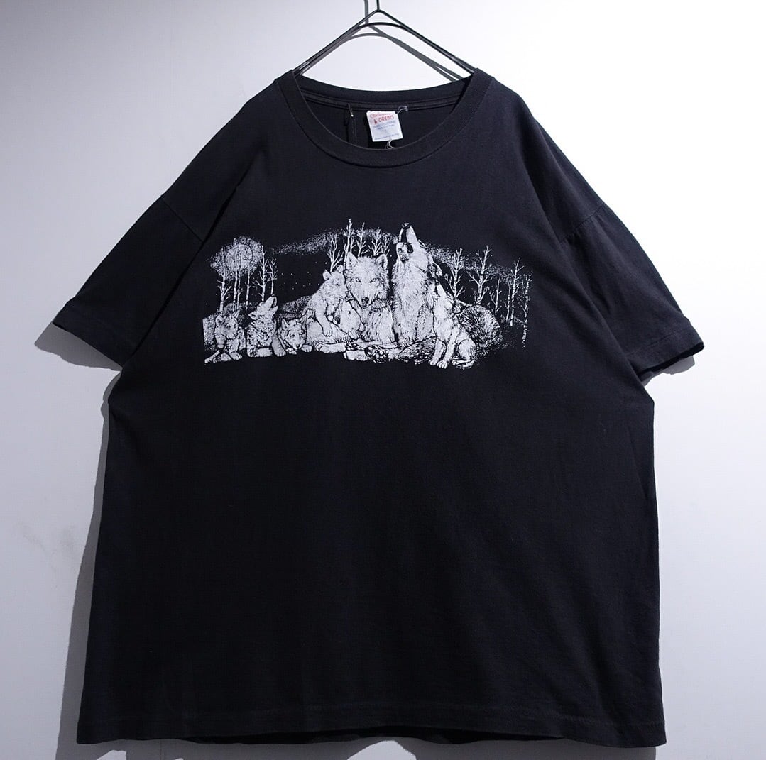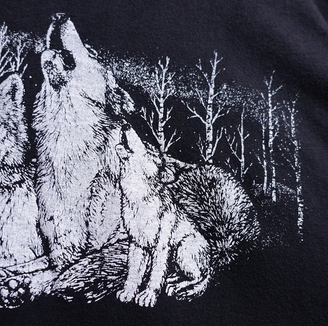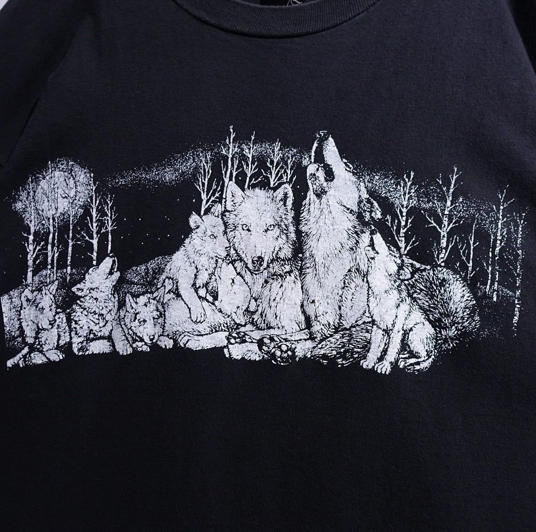 90s Black Wolf Print Design Animal T-shirt