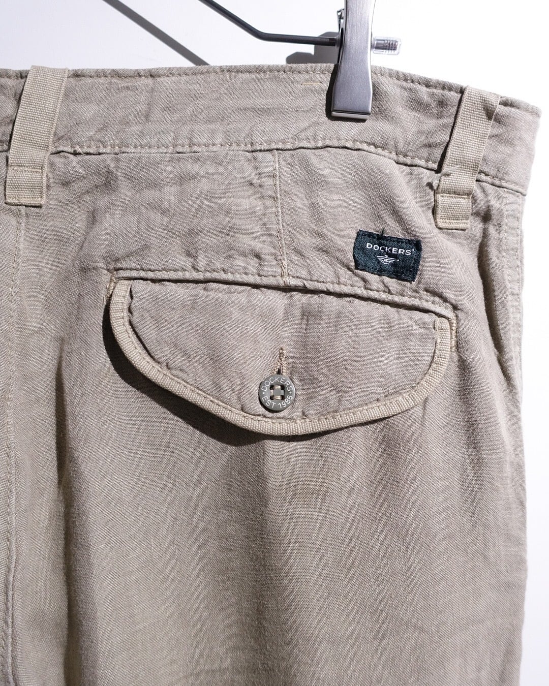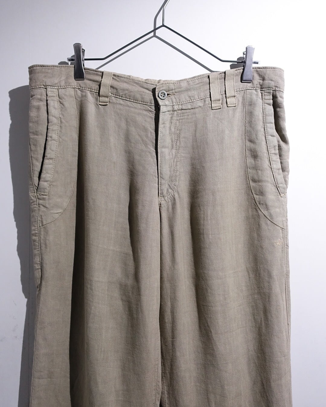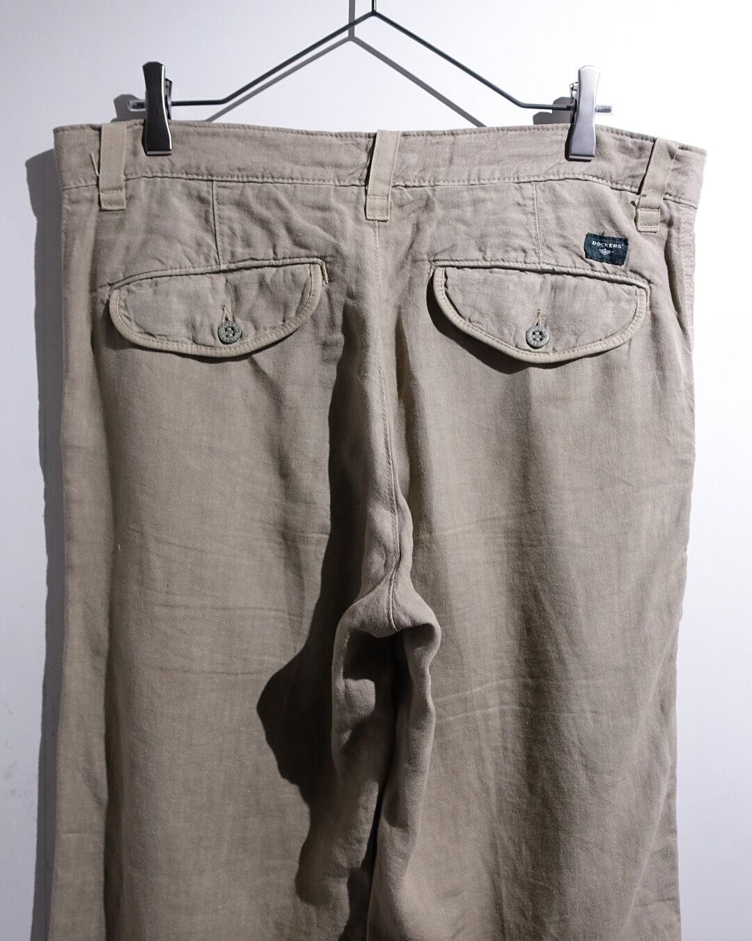 90s “DOCKERS” Taupe Color Linen No-Tuck Wide Straight Pants