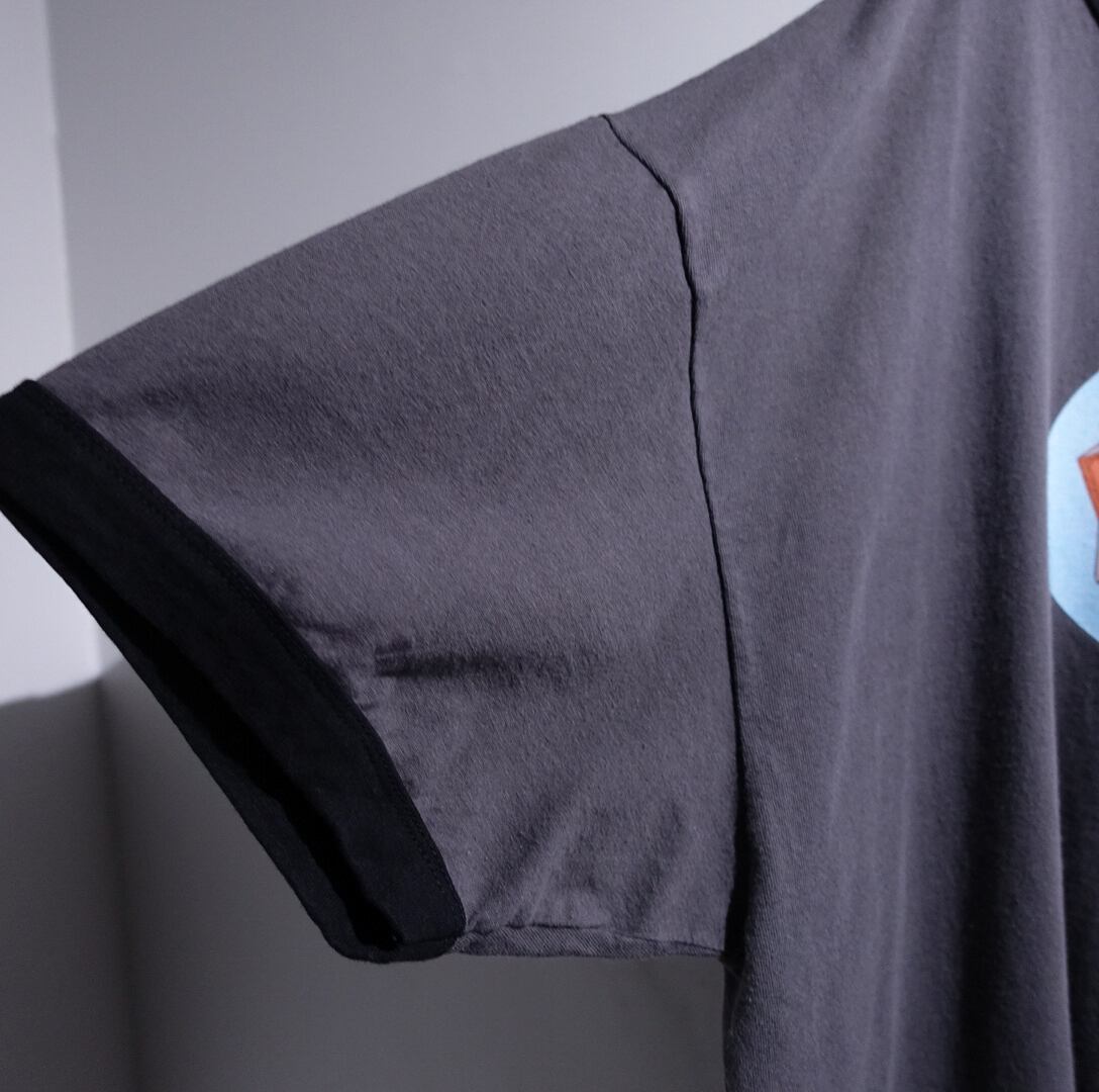 Charcoal Gray x Black Print Design Ringer T-Shirt