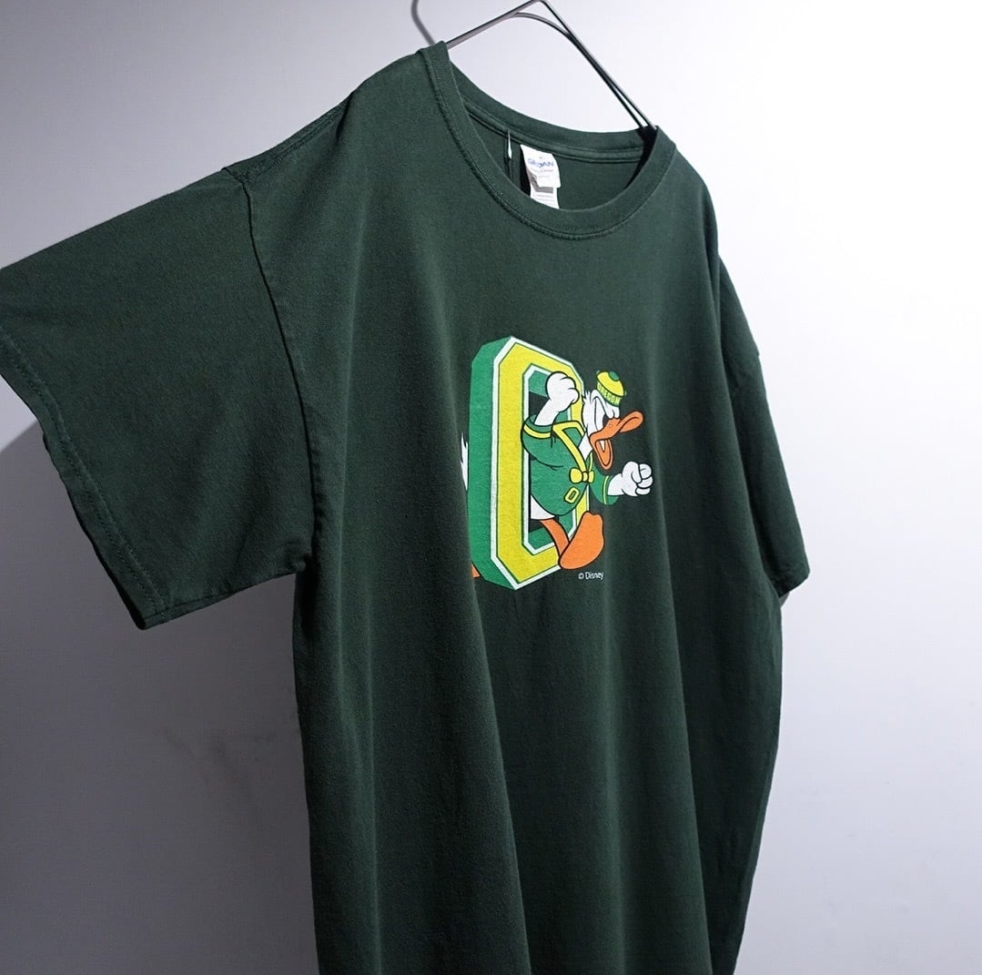00s “Disney” Green Donald Duck Oregon Print Design T-Shirt