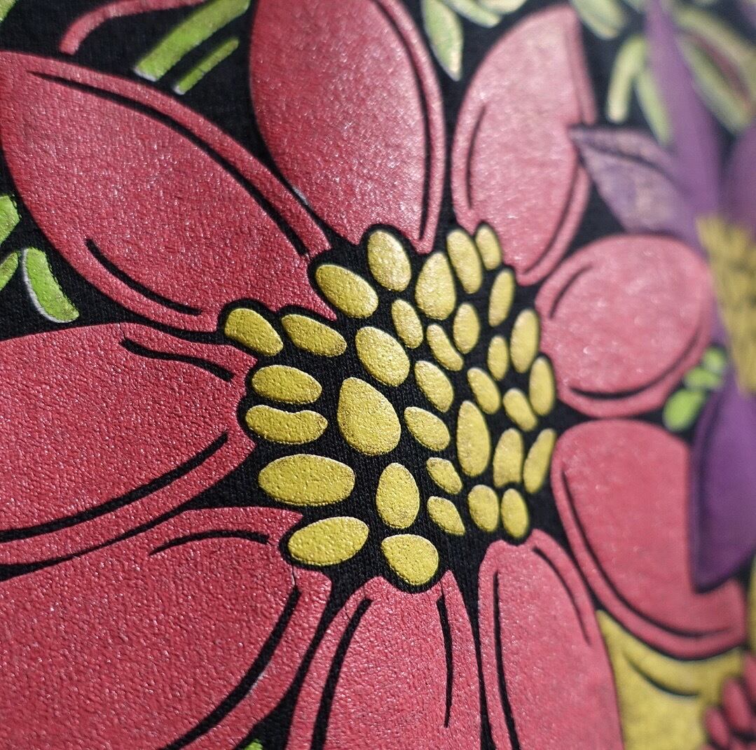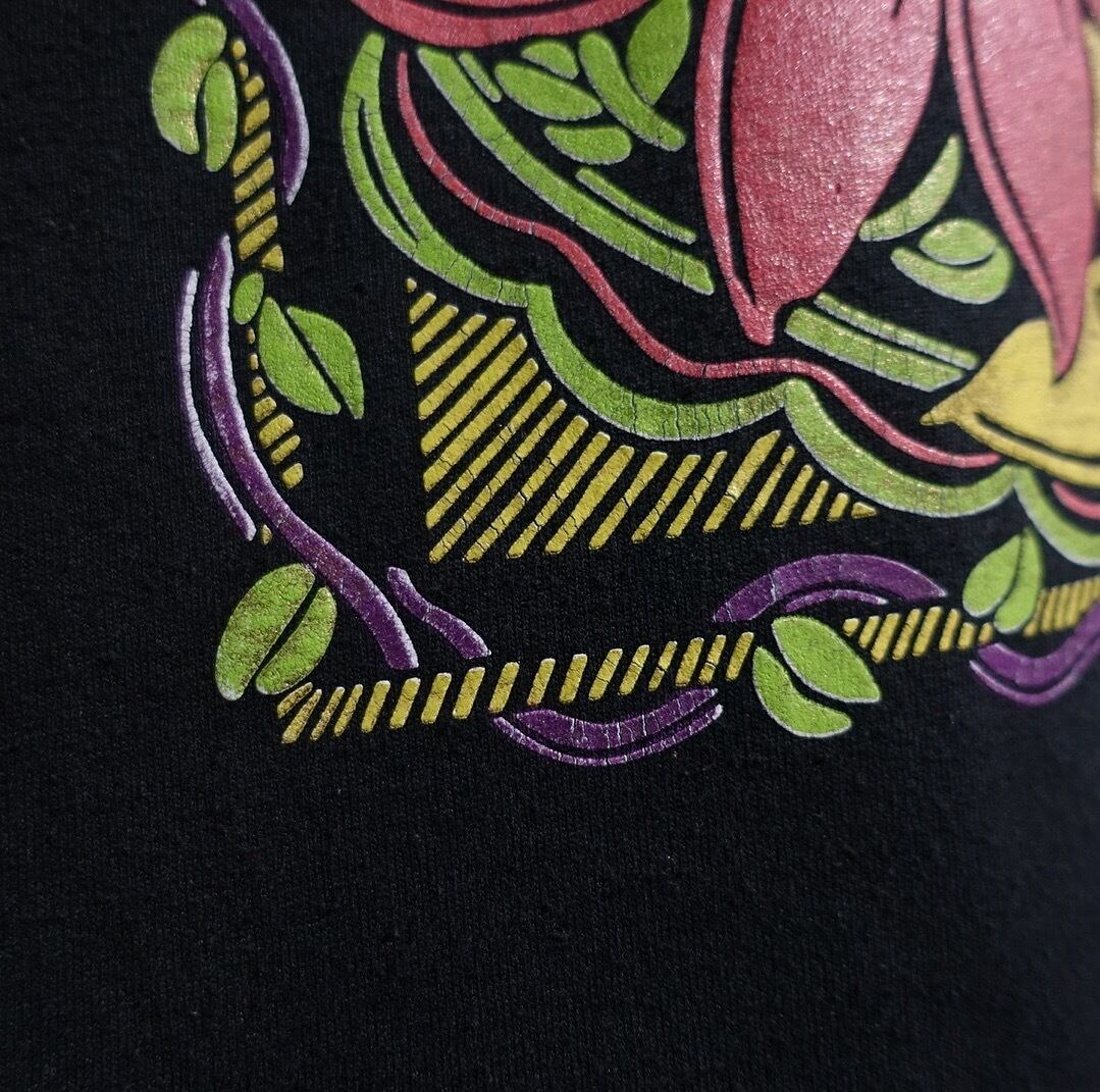 90s Black Flower Motif Foam Print & Stitchwork Design T-Shirt