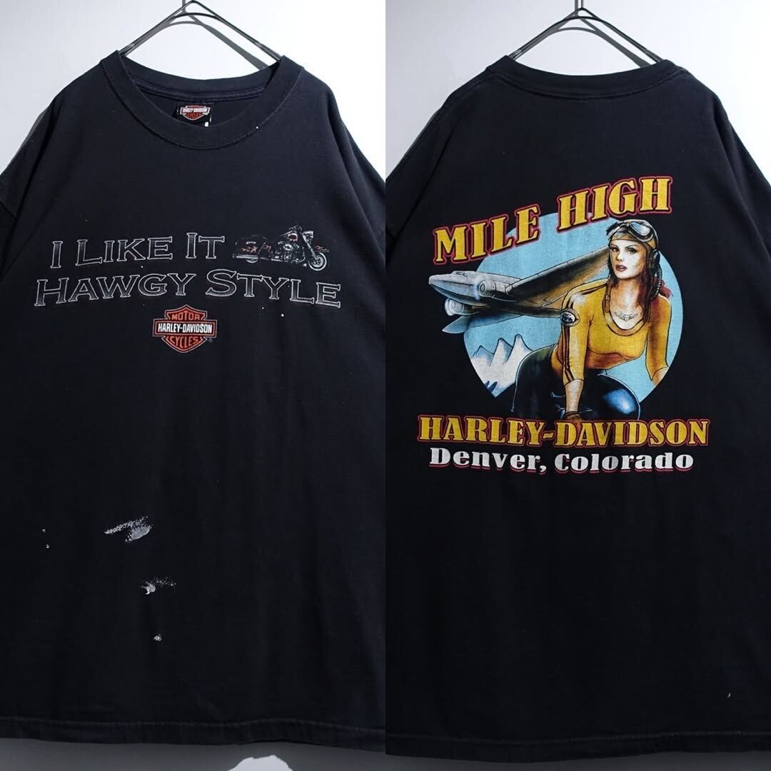 “Harley Davidson” Black Paint Print Design T-Shirt