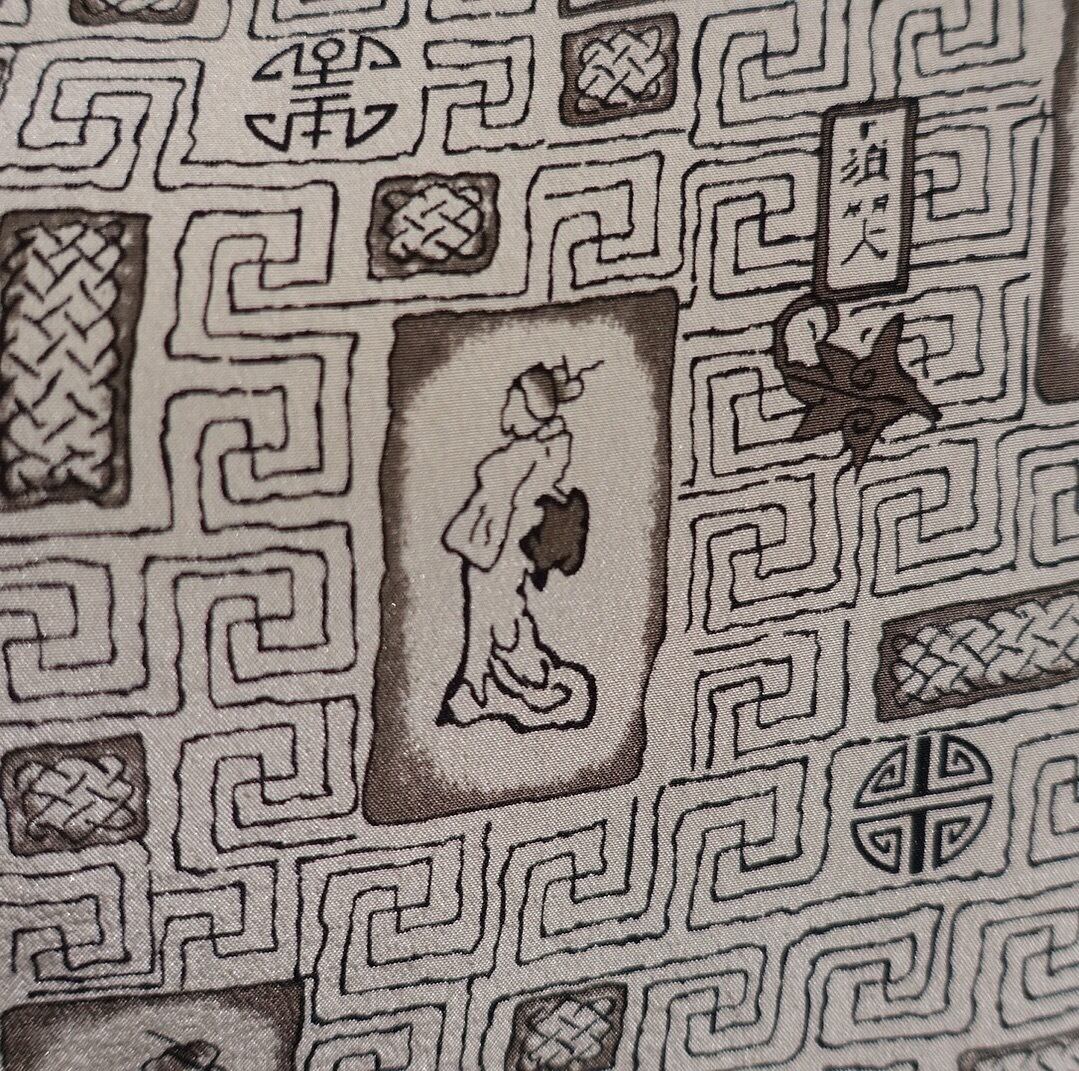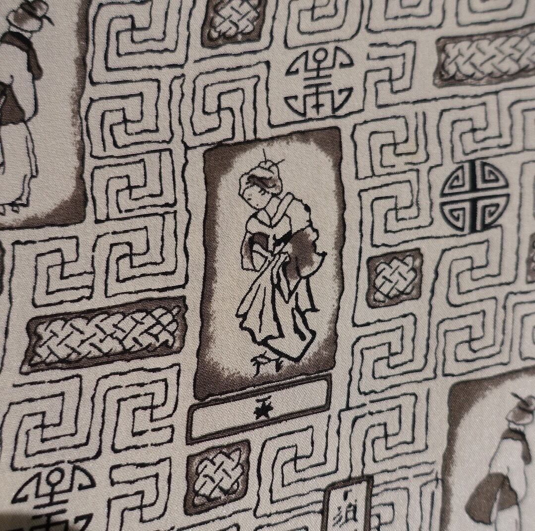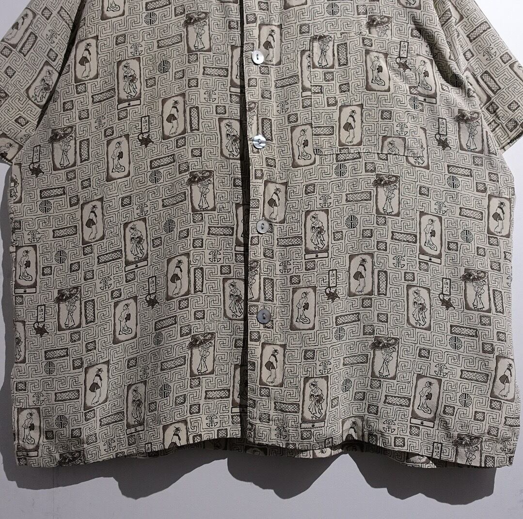 90s “CHICO’S” Beige Ukiyo-e Design Silk Shirt