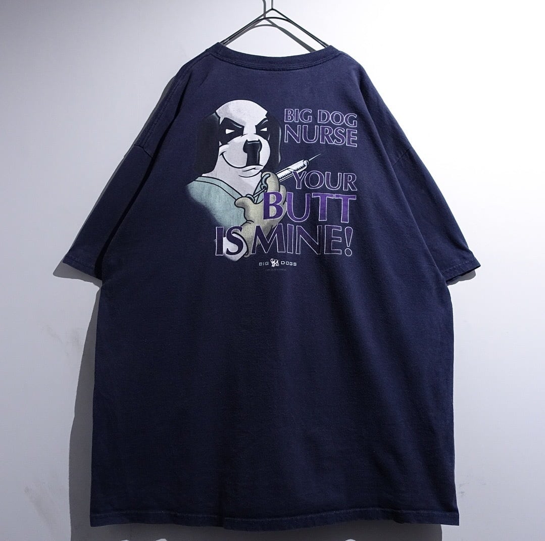 00s "BIG DOGS" Dark Navy DOG NURSE Print Design T-Shirt