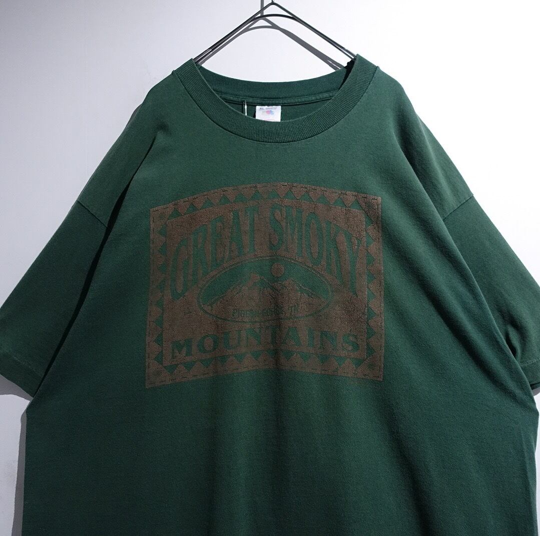 90s Green GREAT SMOKY MOUNTAIN Print Design T-Shirt