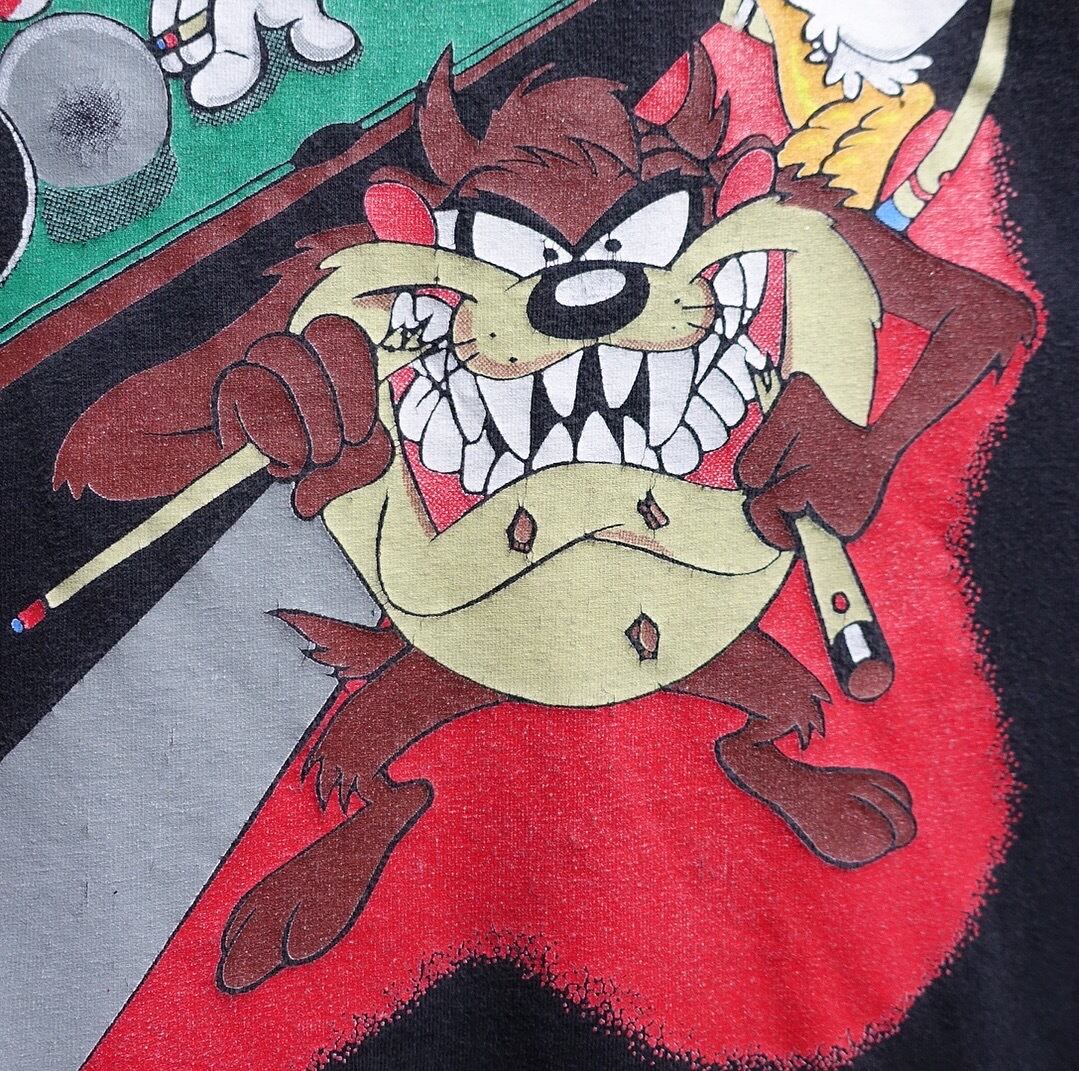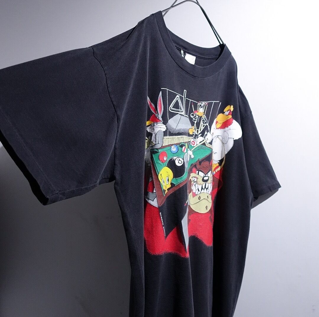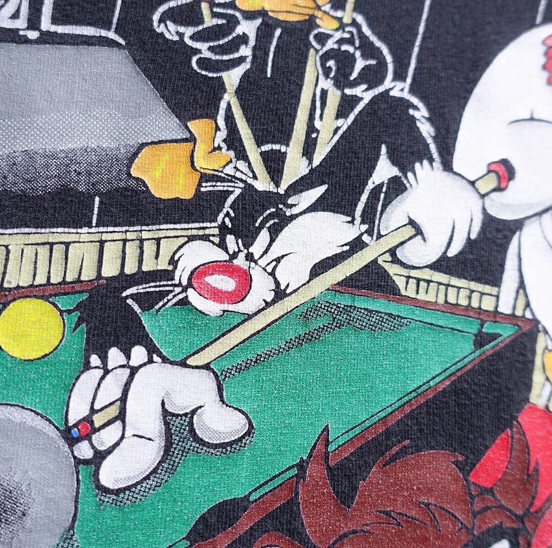 90s “Warner Bros”Fade Black Billiards Character Print Design T-Shirt