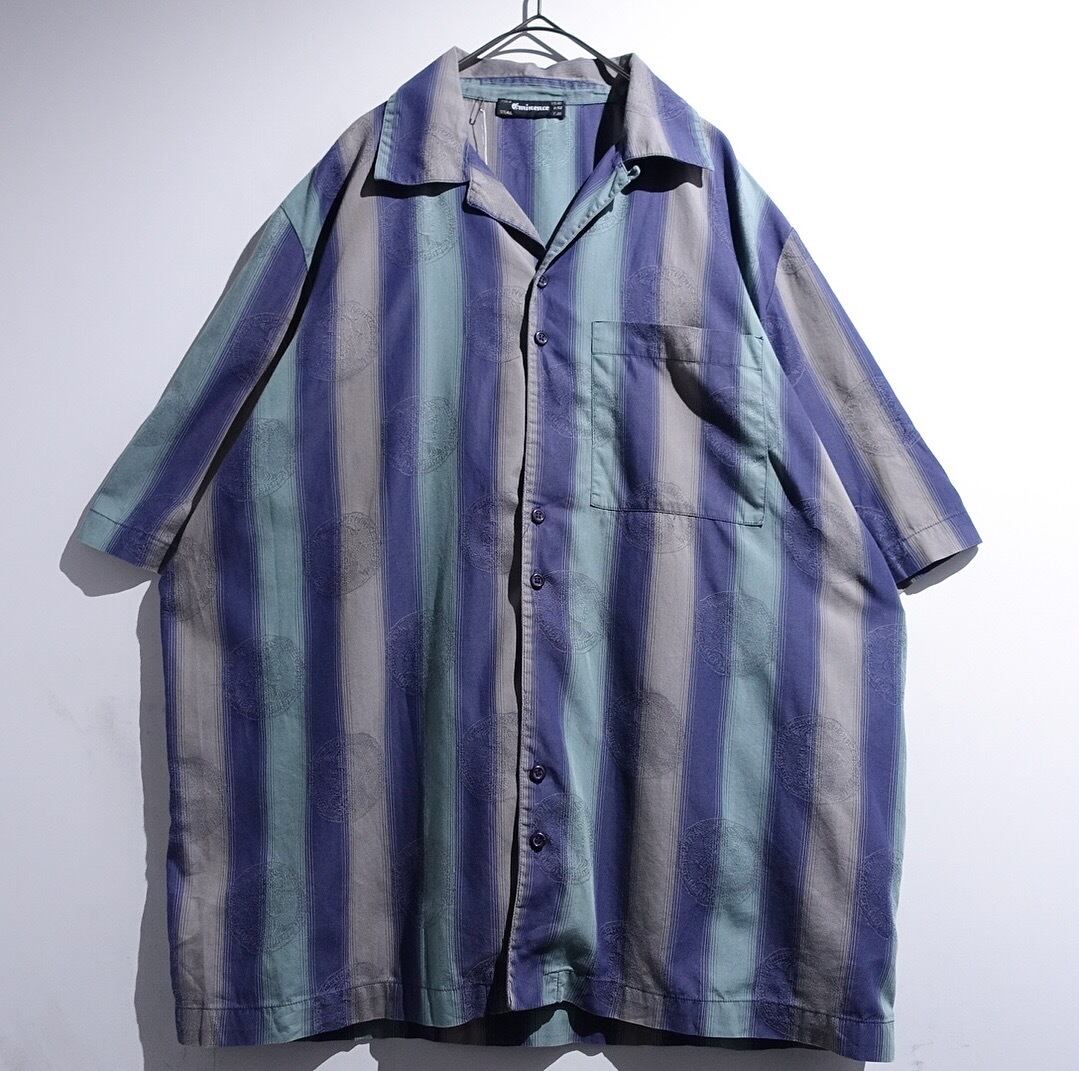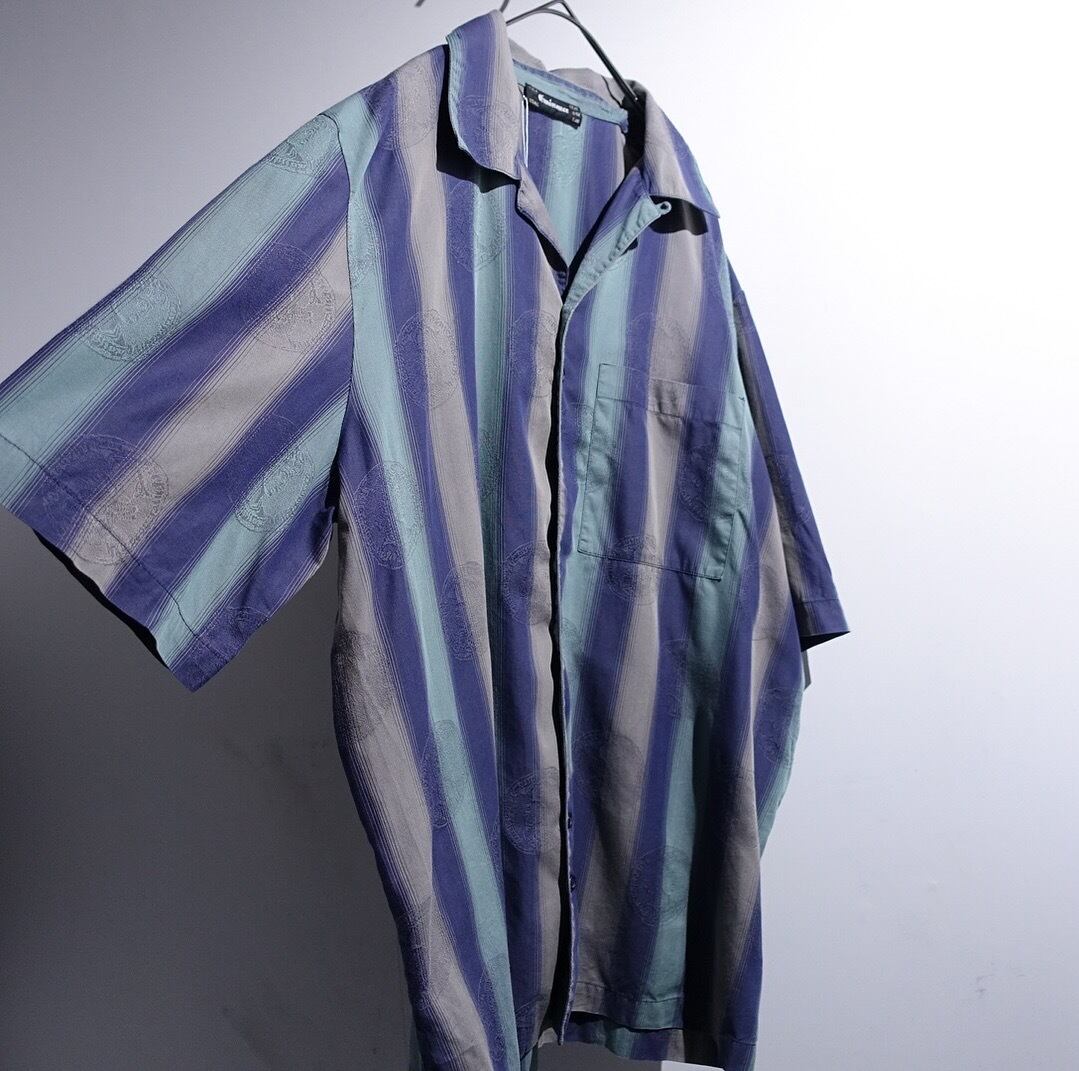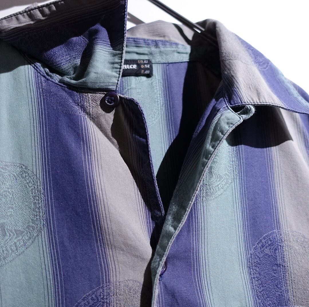 EURO Multicolor Stripe & Goddess Coin Design Open Collar Shirt