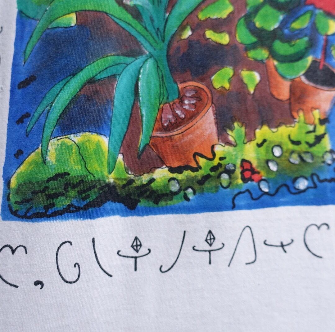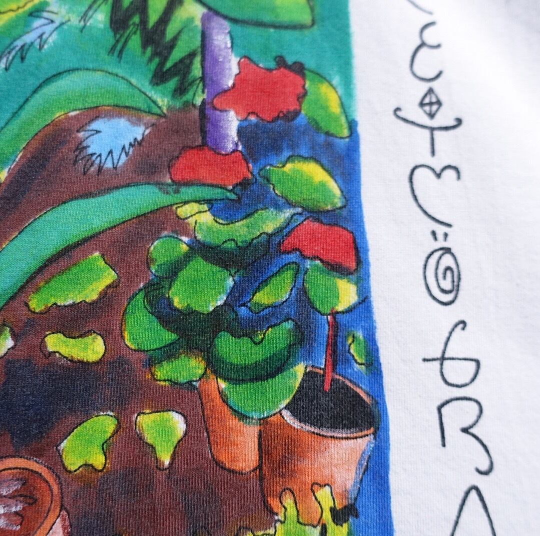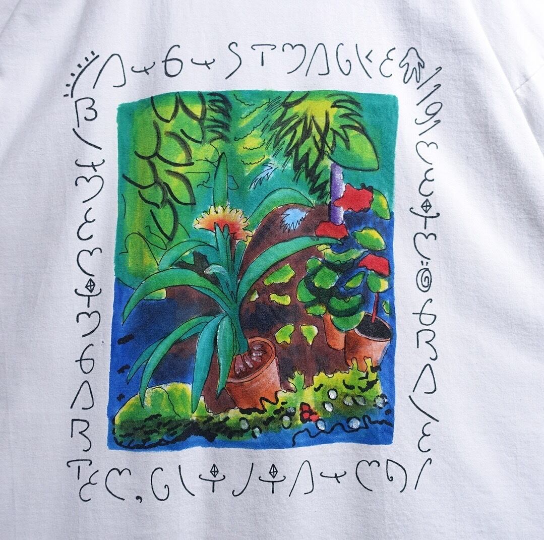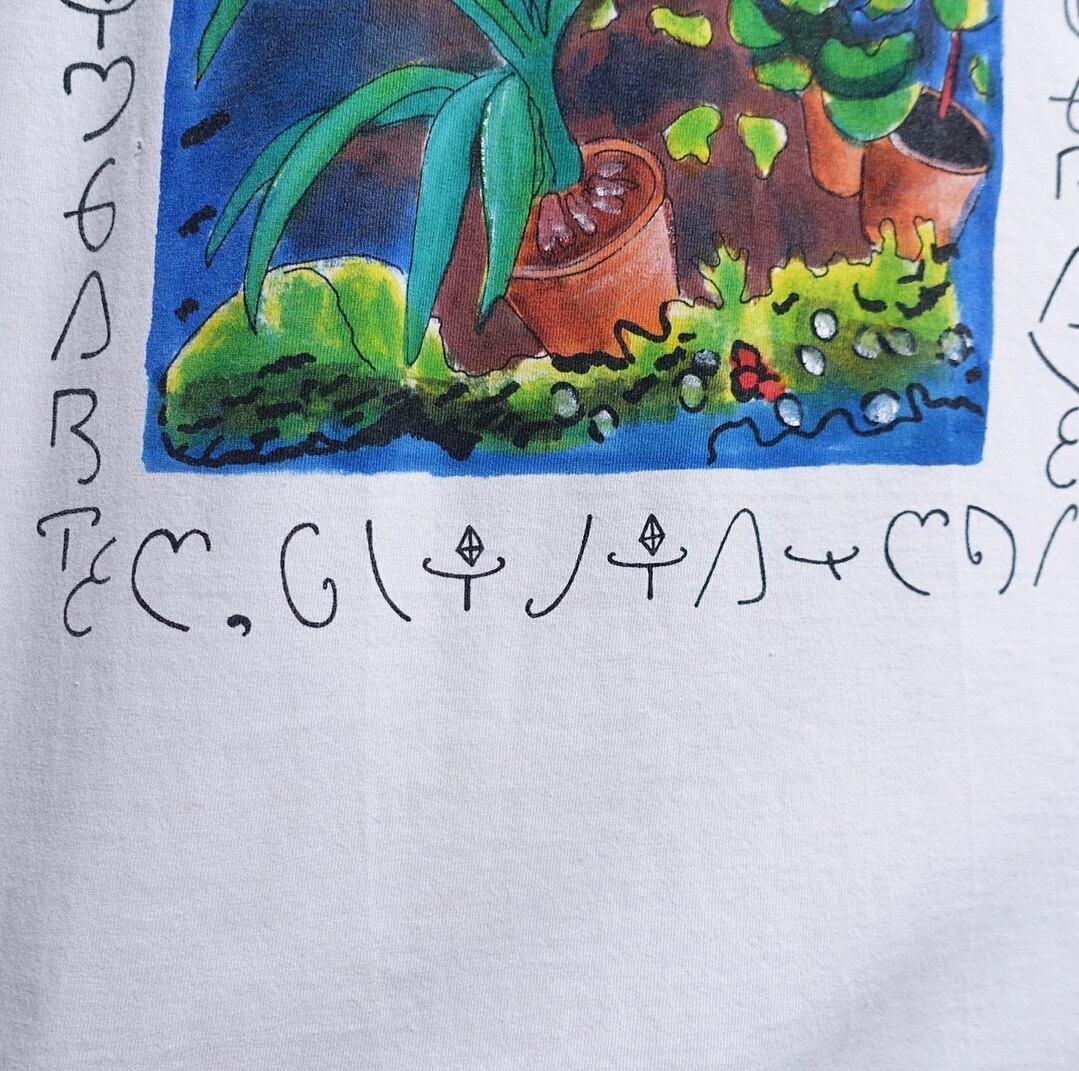 90s White Botanical Motif Print Desgin Art T-Shirt