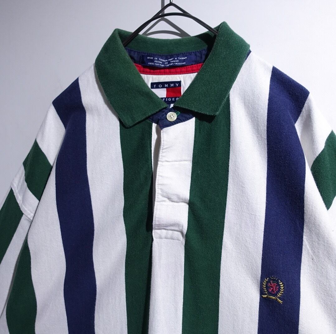 90s “TOMMY HILFIGER” Multicolor Stripe Design Rugby Shirt