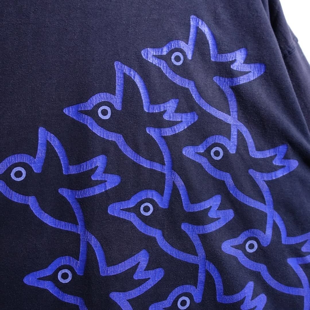 90s Faded Dark Navy Bird Motif Art Print T-Shirt