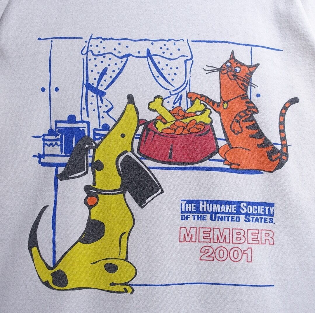 00s White Dog & Cat Illustration Print Design T-Shirt