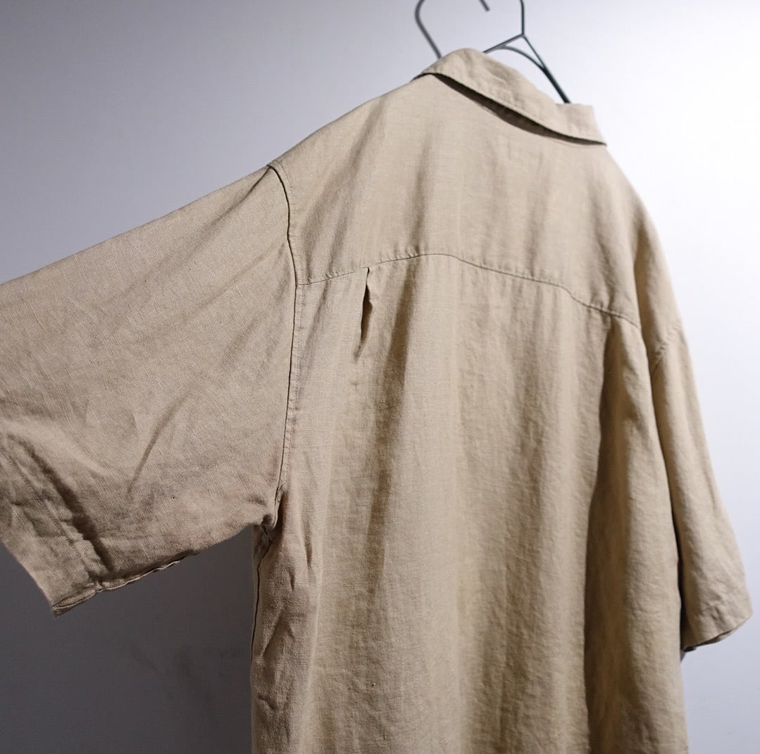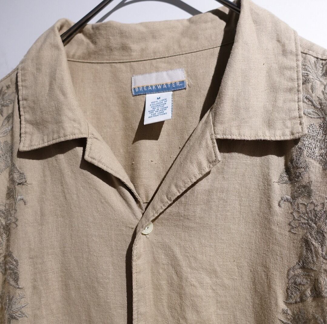 Beige Botanical Embroidery Design Linen Open collar Shirt