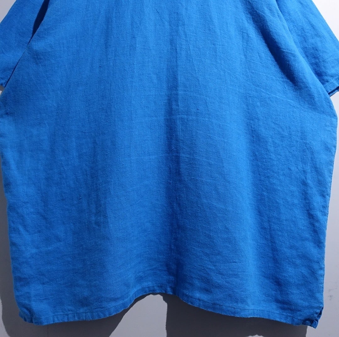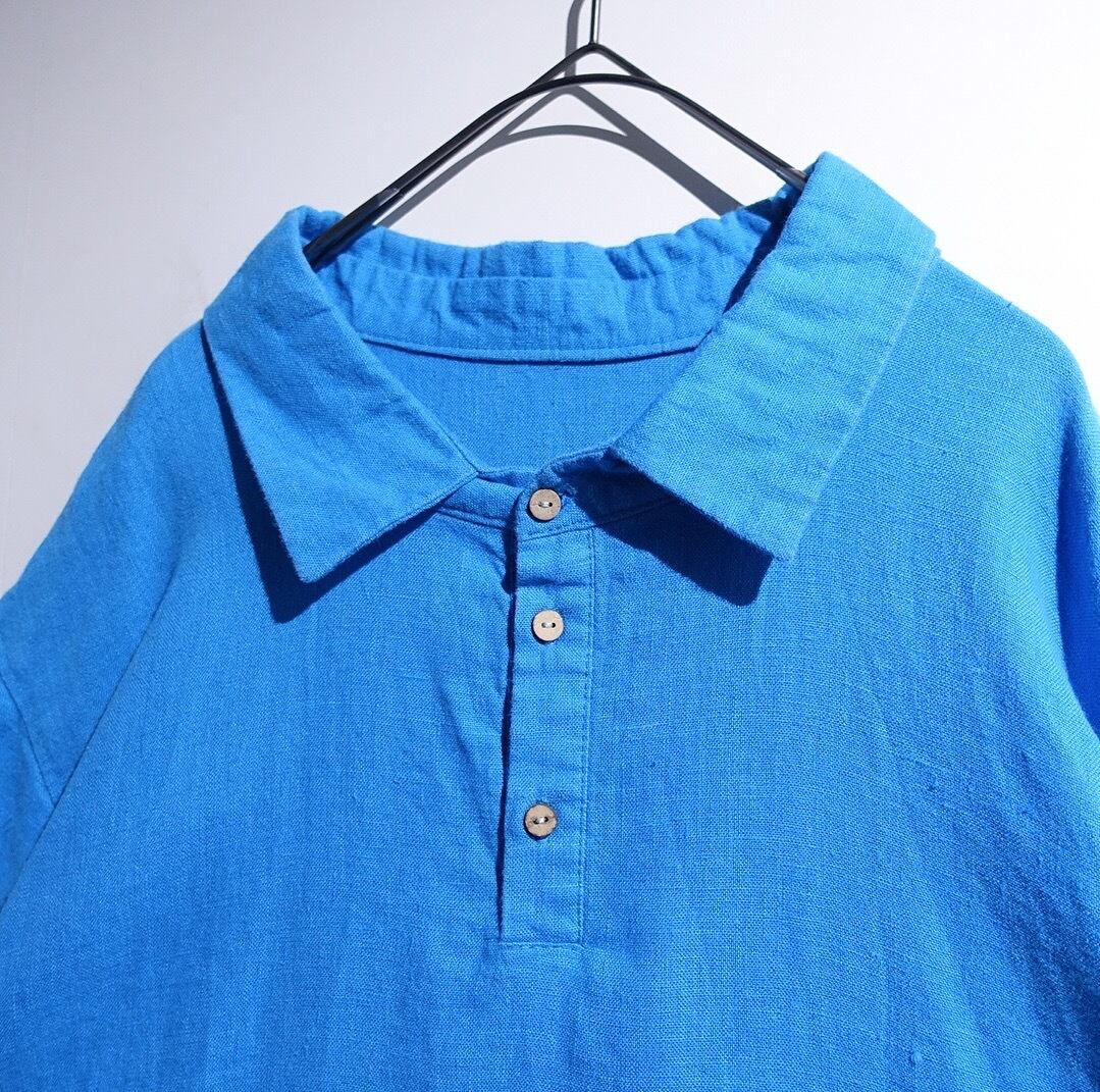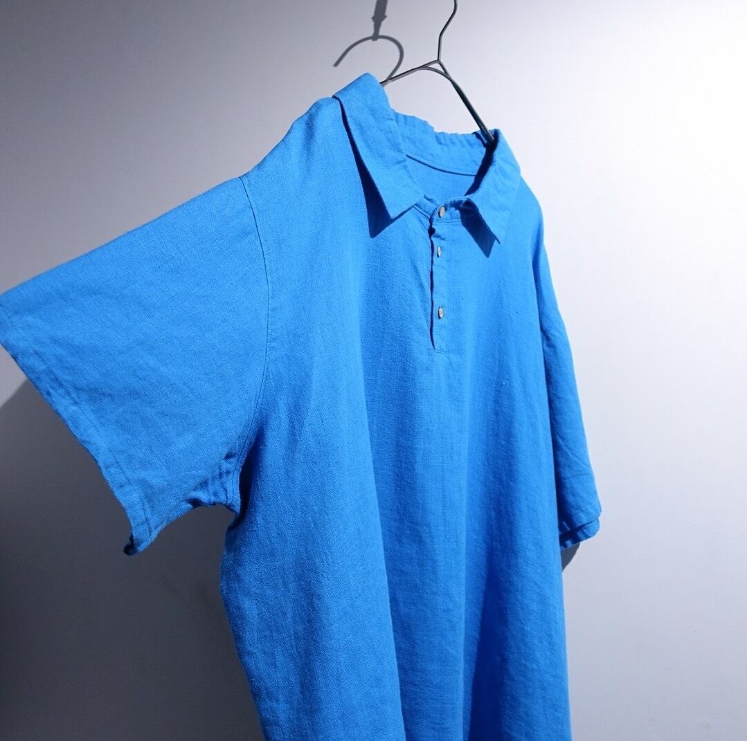 Cobalt Blue Color Half Button Linen Pullover Shirt