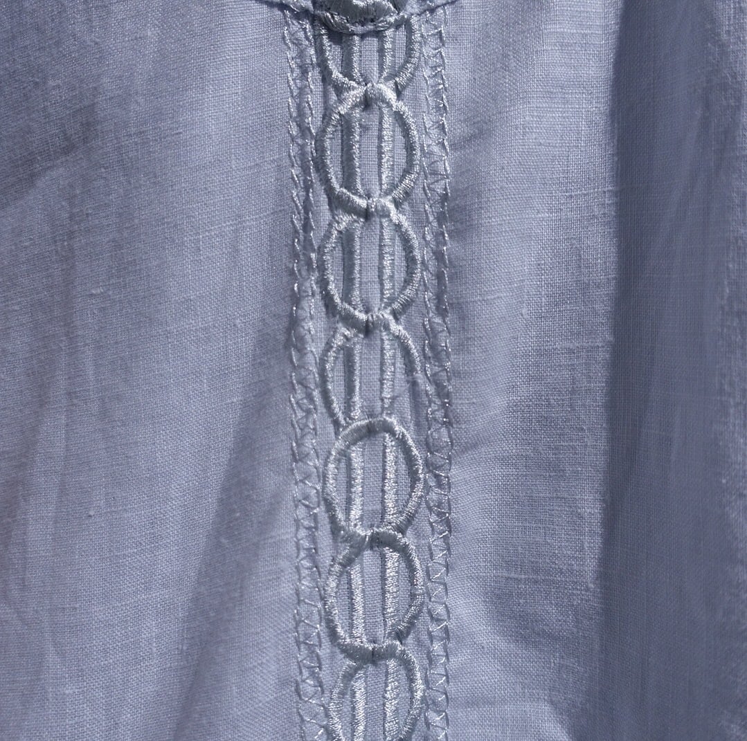 Light Blue Geometric Embroidery Design Linen Cuba Shirt