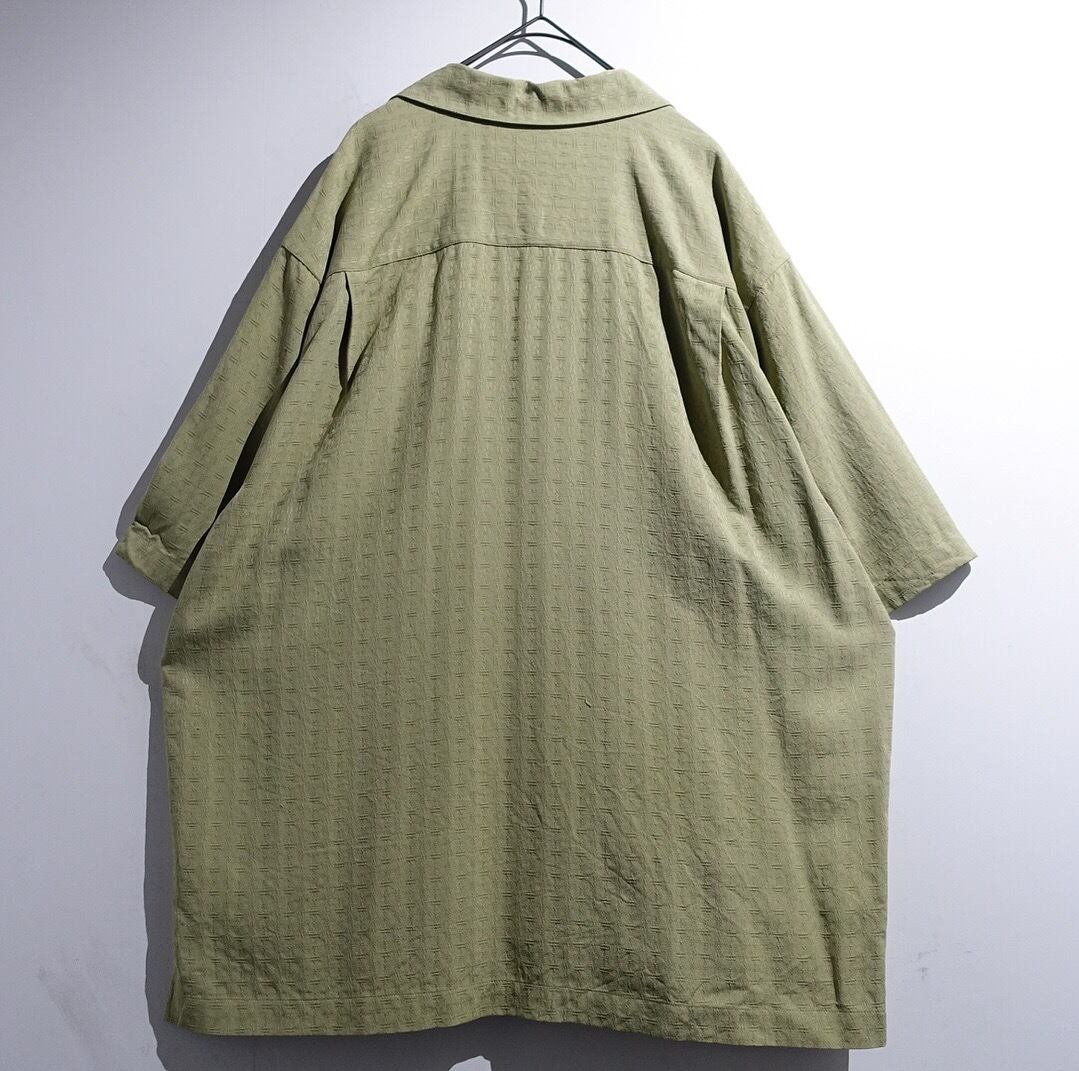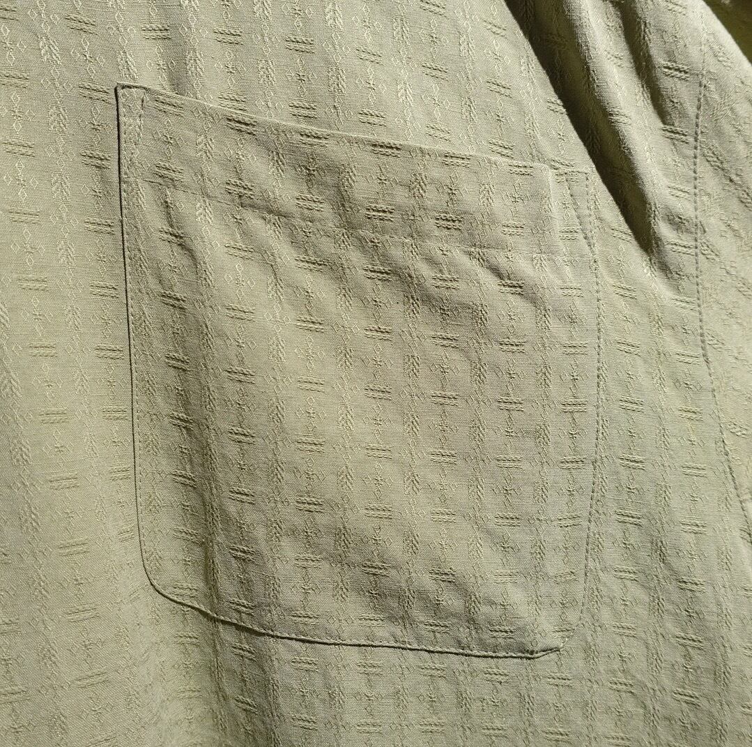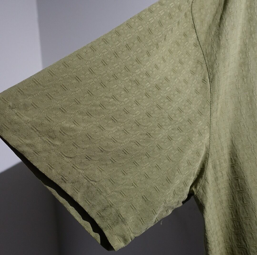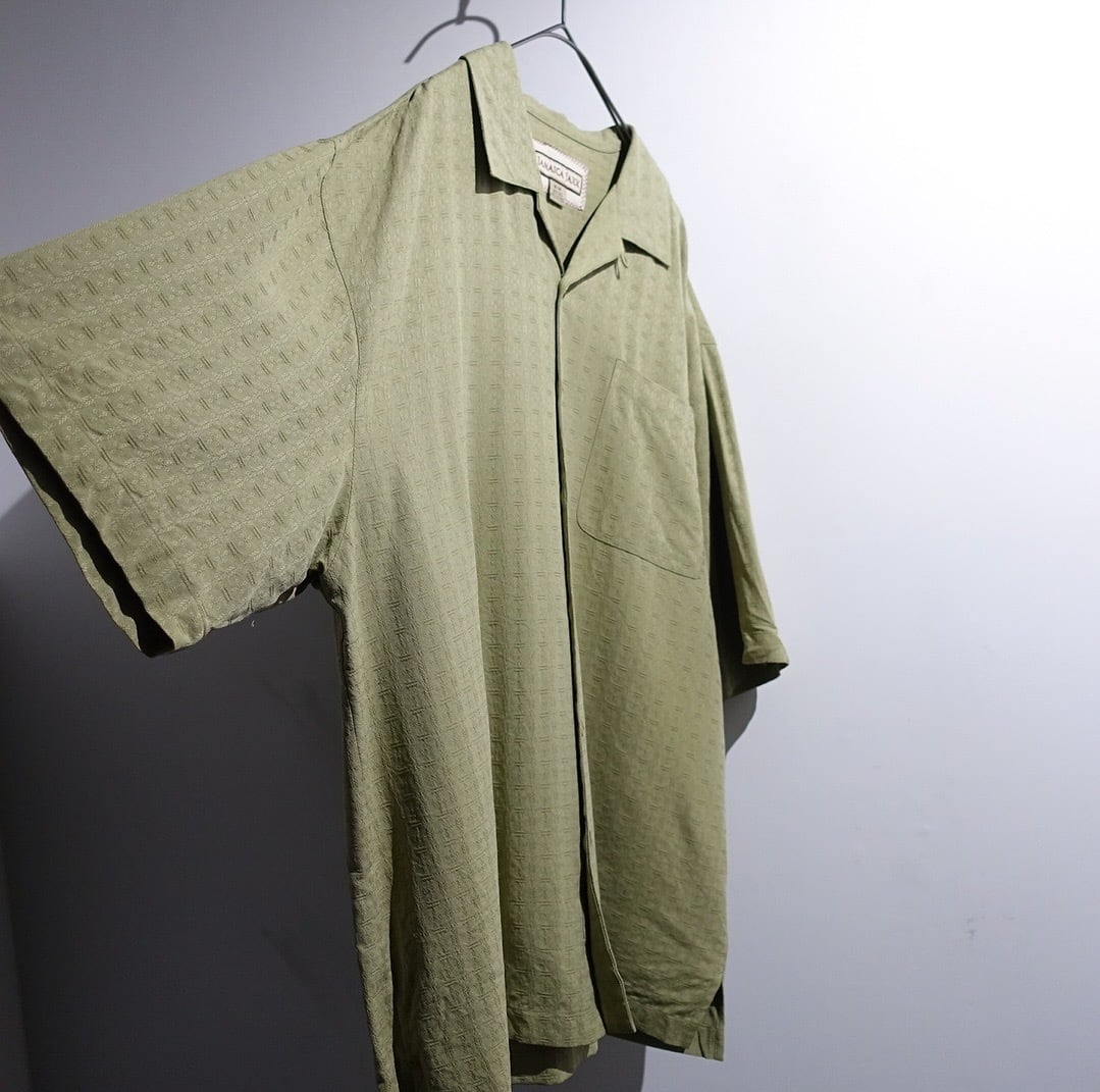 90s Green Geometric Jacquard Design Open Collar Silk Shirt