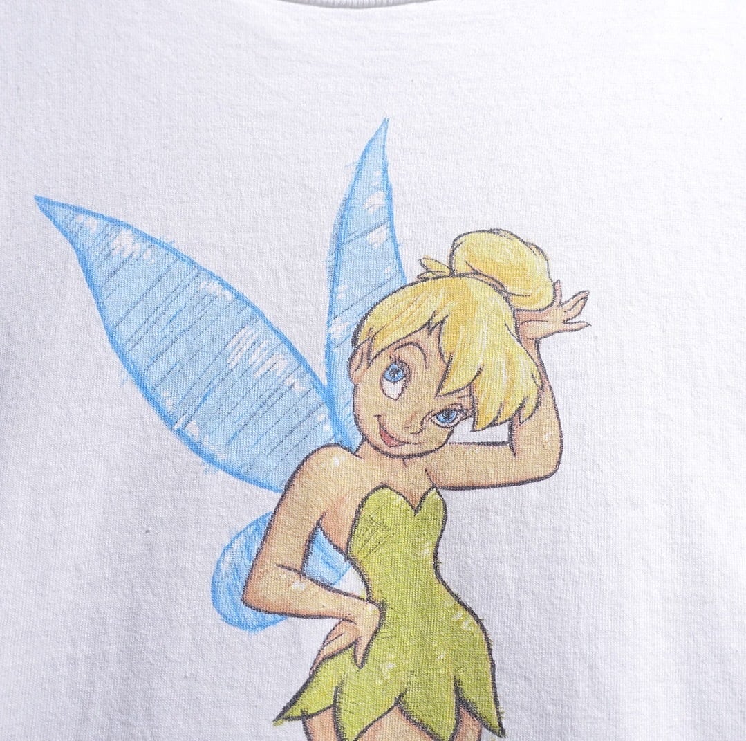 90s "Disney" White Tinkerbell Print Design T-Shirt
