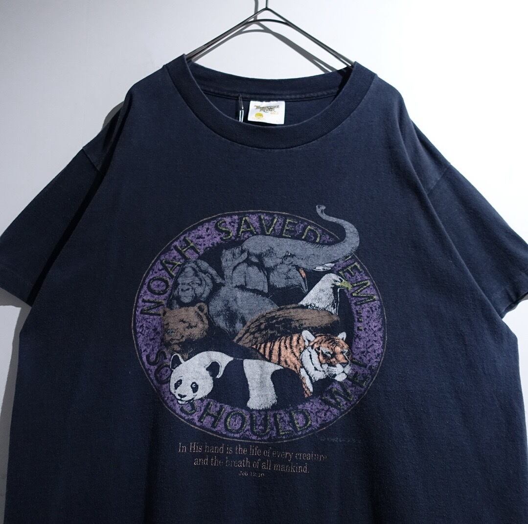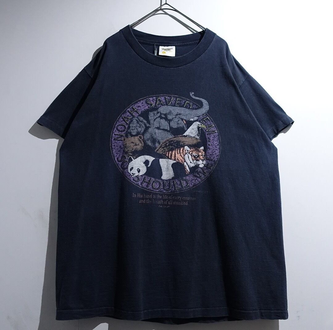 90s Black Various Animal Artistic Print Design T-Shirt