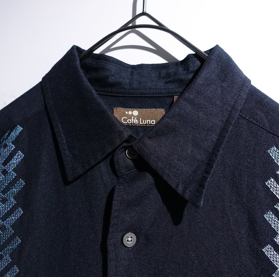 Black Geometric Gradient Embroidery Design Cuba Shirt
