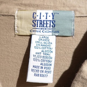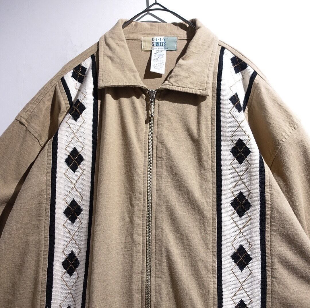 90s “CITY STREETS” Beige Argyle Knit Design Zip Shirt