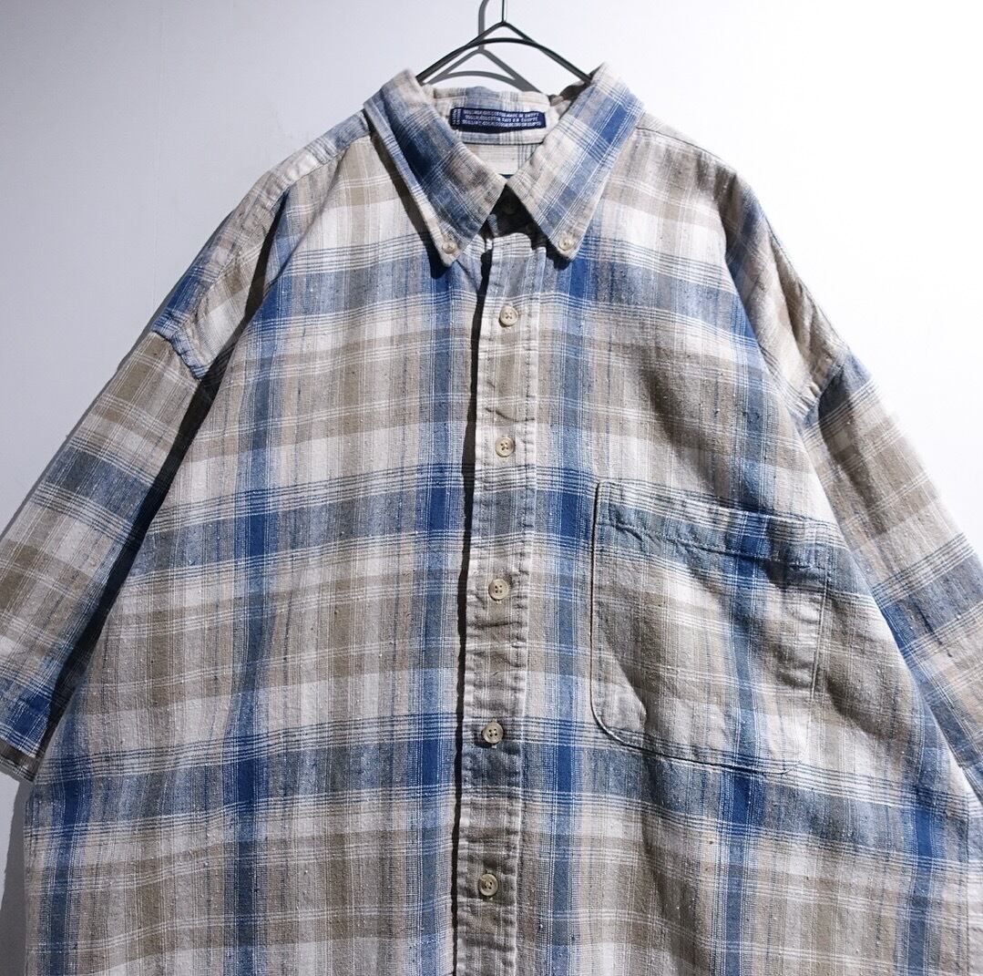 90s "VAN HEUSEN" Multicolor Check Cotton & Linen Shirt