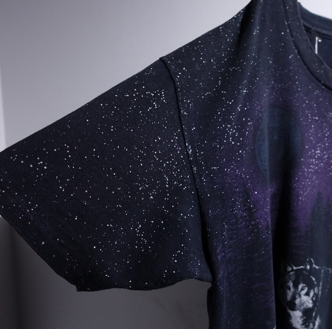 90s "anvil" Black Wolf Landscape Artistic Full Print Design T-Shirt