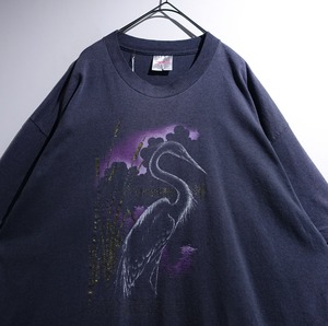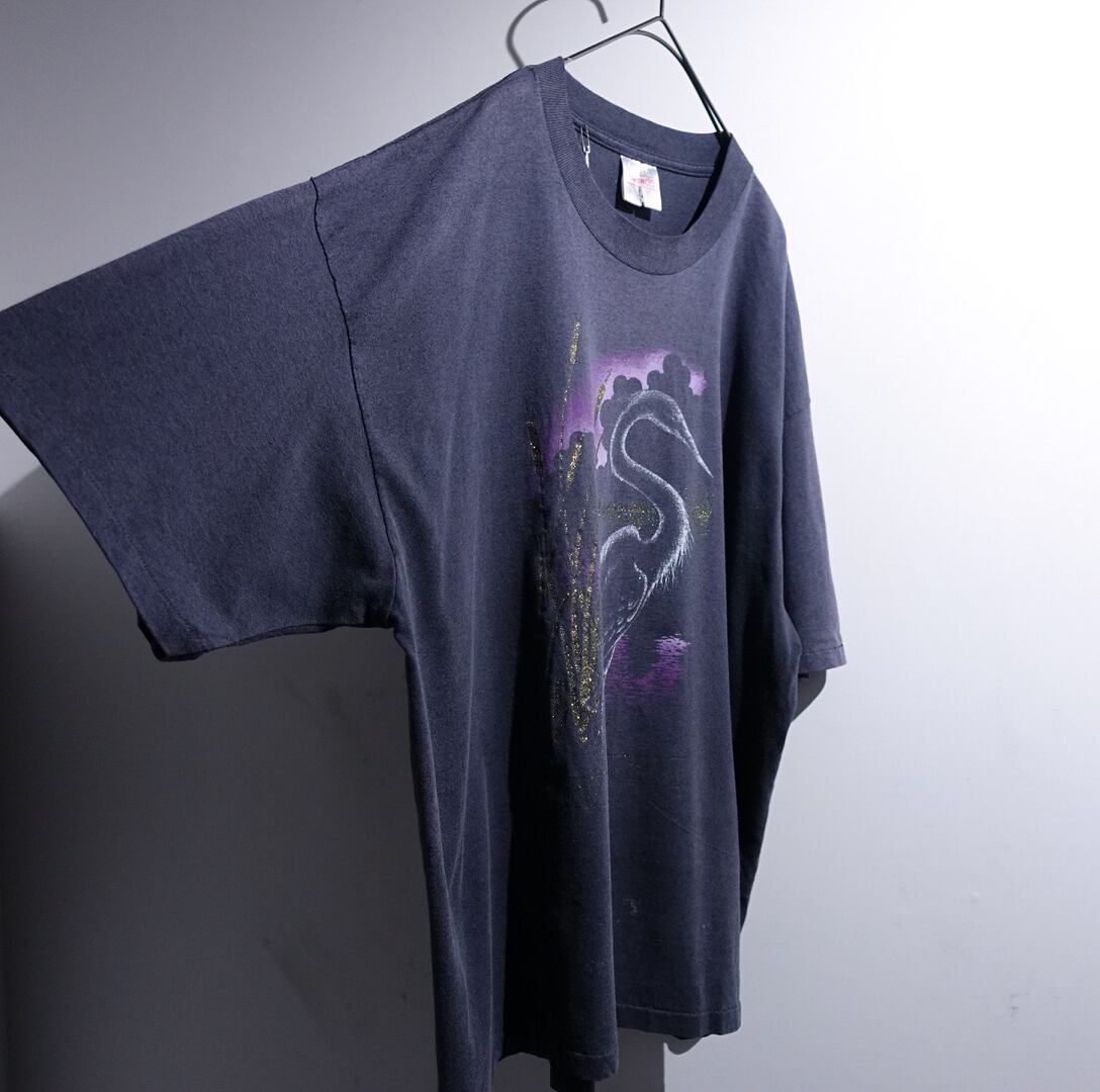 90s “ONEITA” Fade Black Swan Print Animal T-Shirt