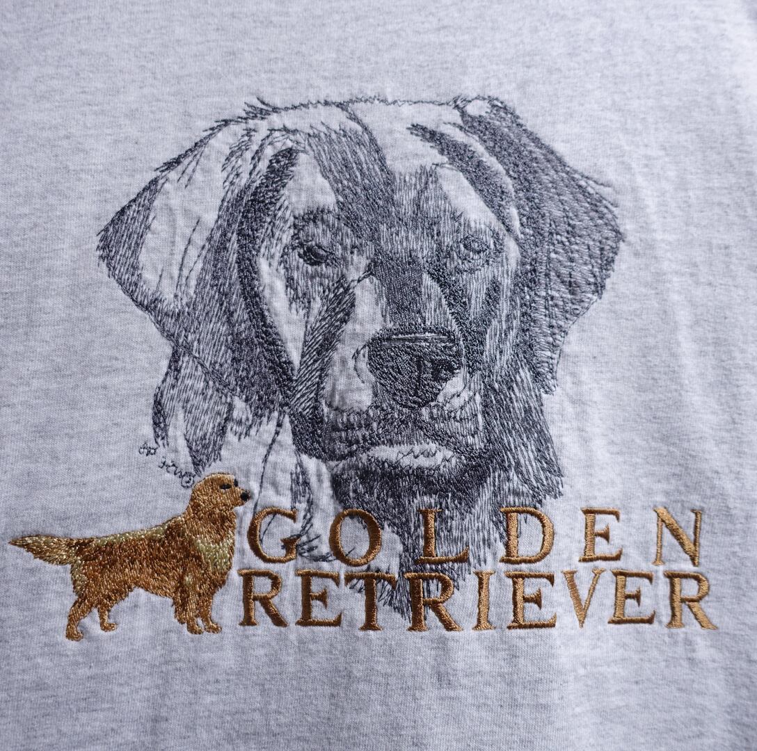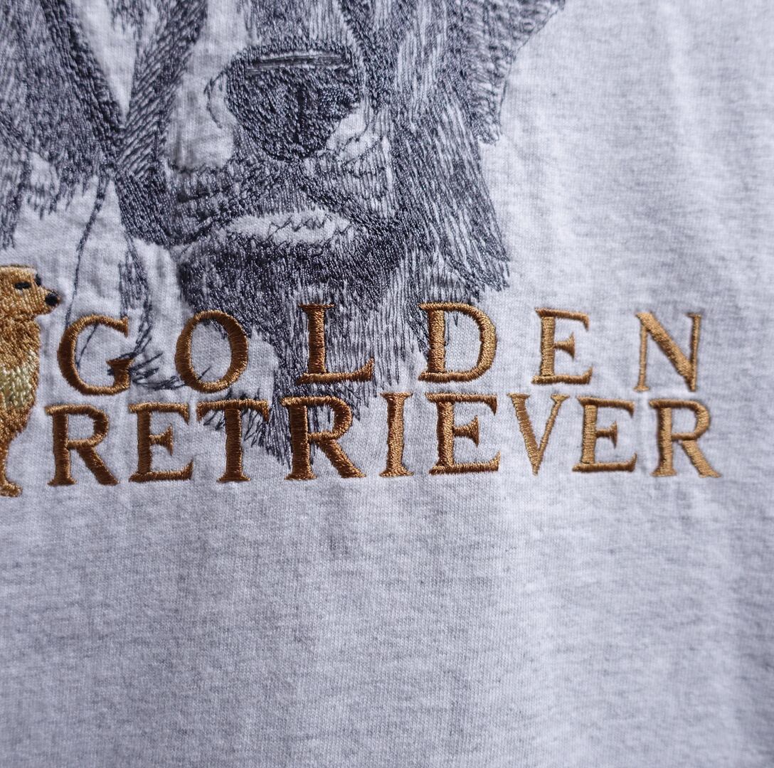 00s Gray Golden Retriever Embroidered Animal T-Shirt