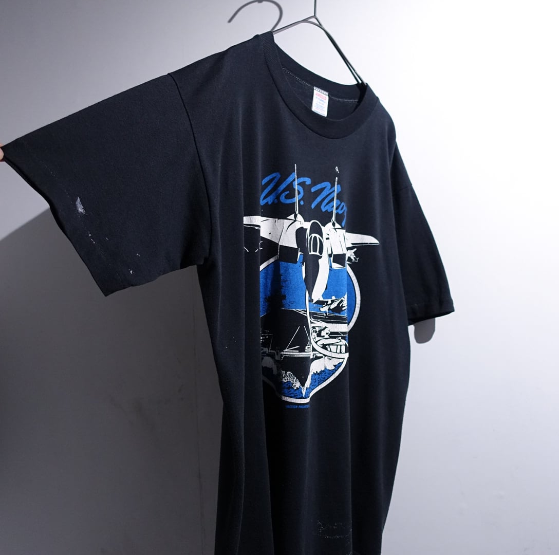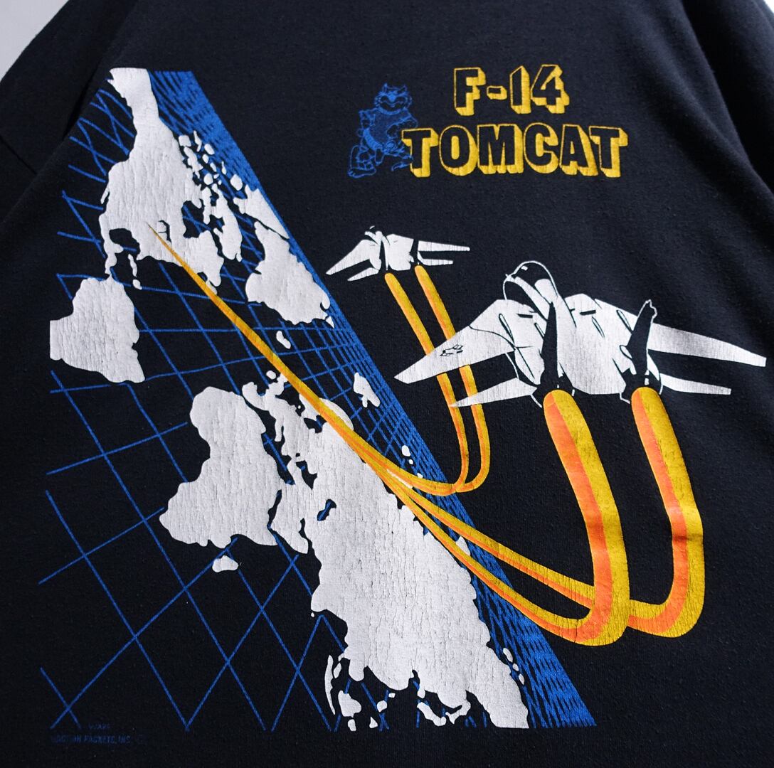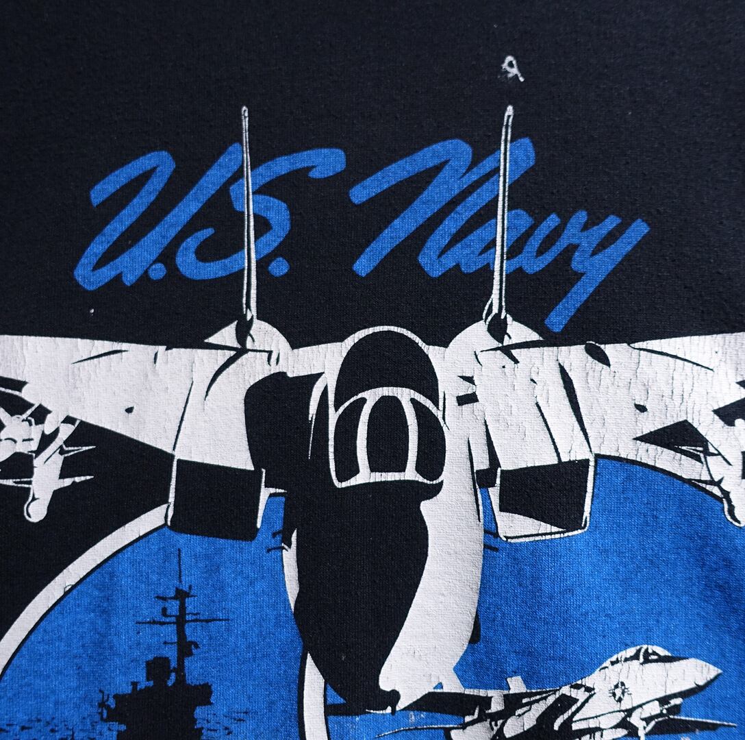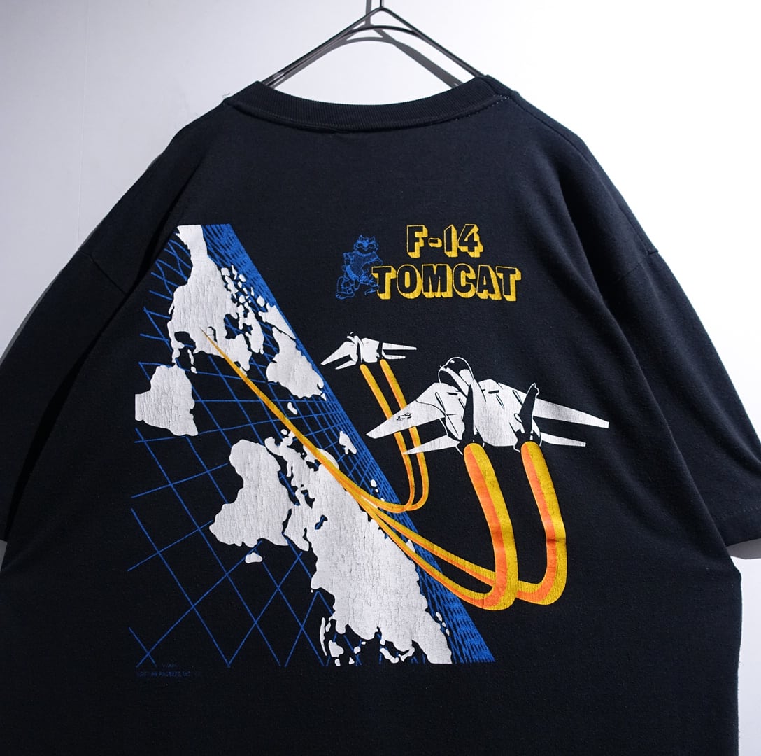 80s Black U.S. Navy F-14 Tomcat Print T-Shirt