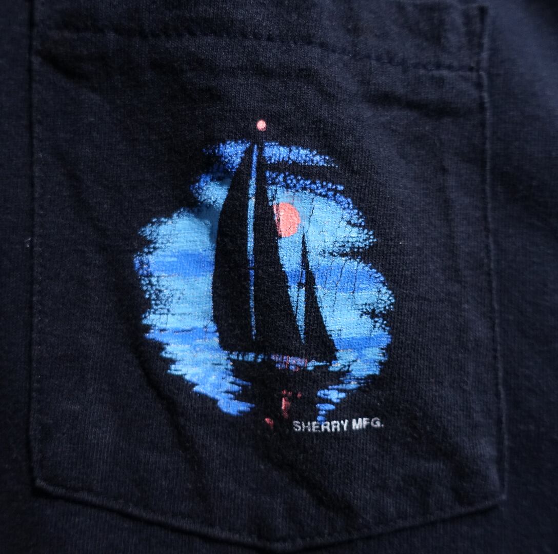 90s Black Yacht Sunset Landscape Print T-Shirt