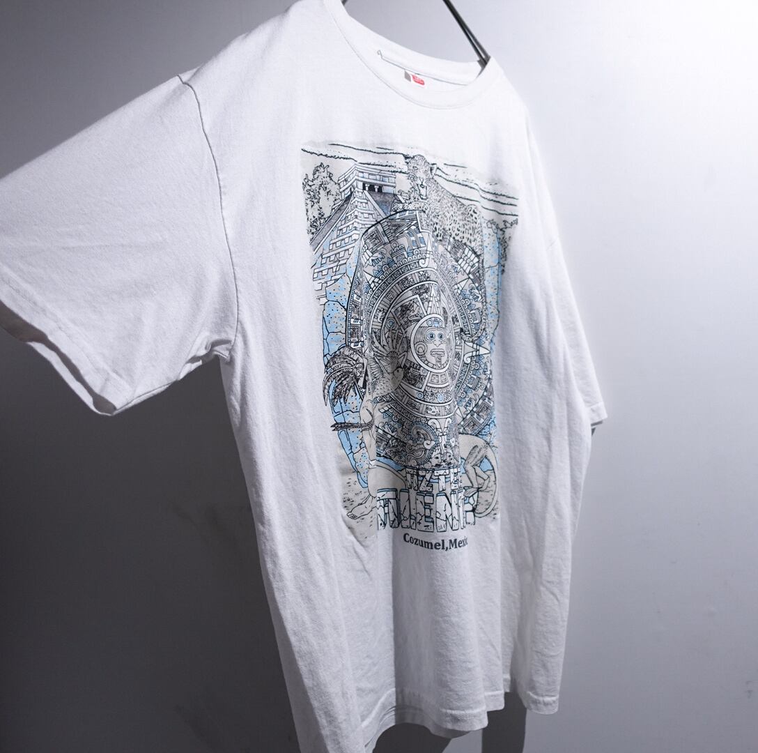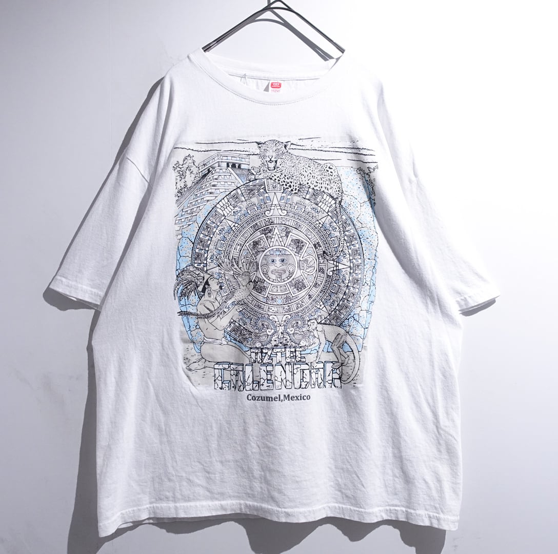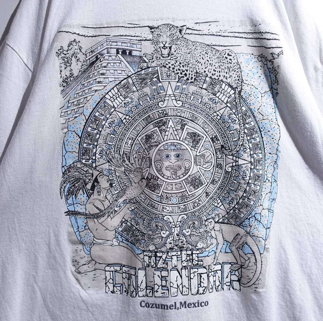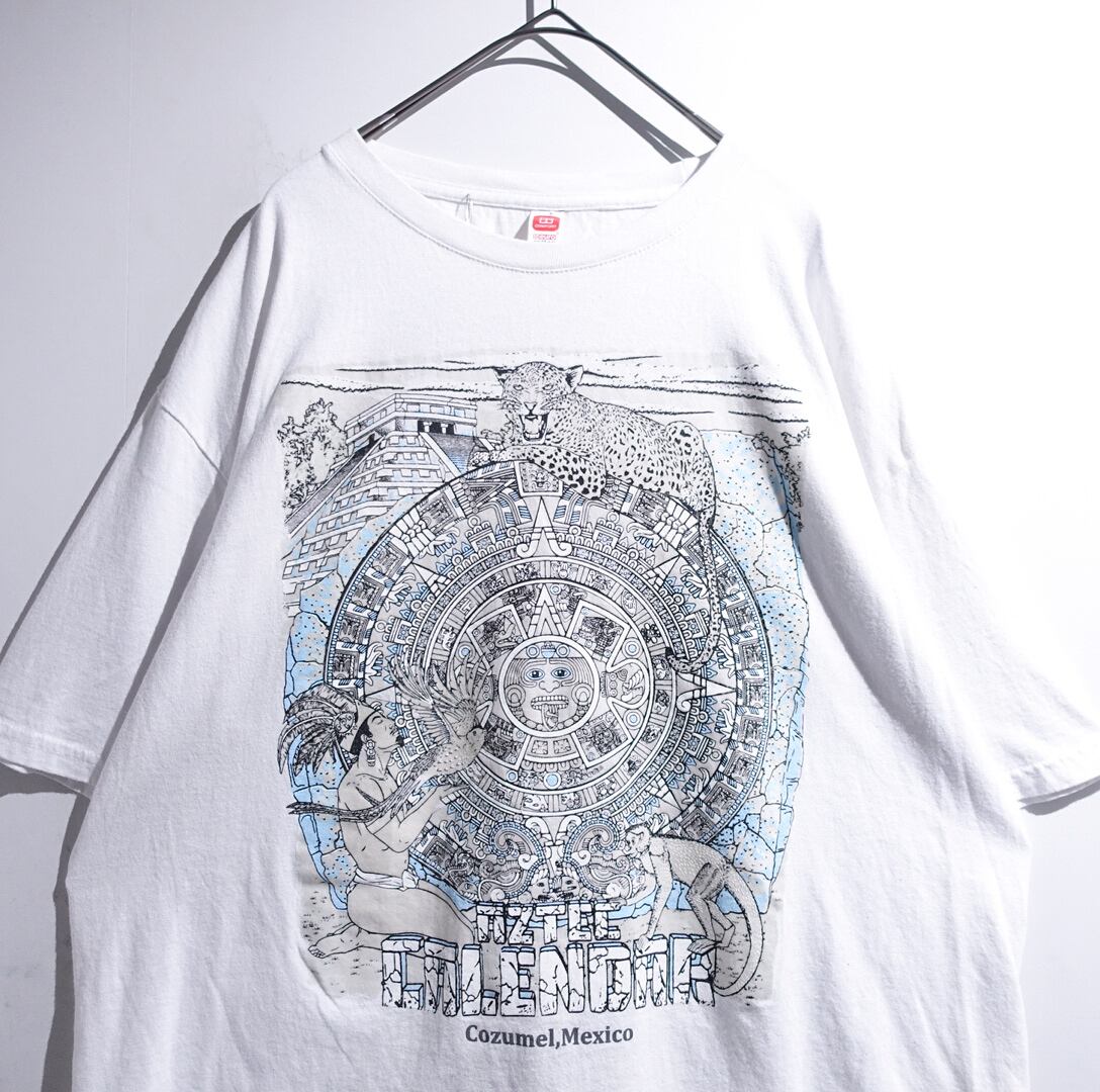 White Aztec Calendar Print Design Souvenir T-Shirt