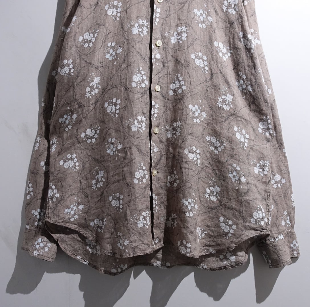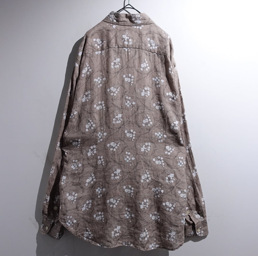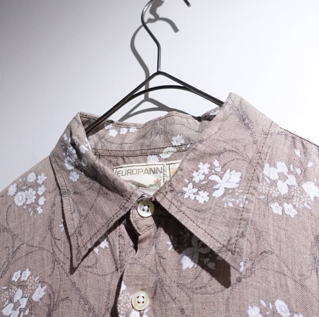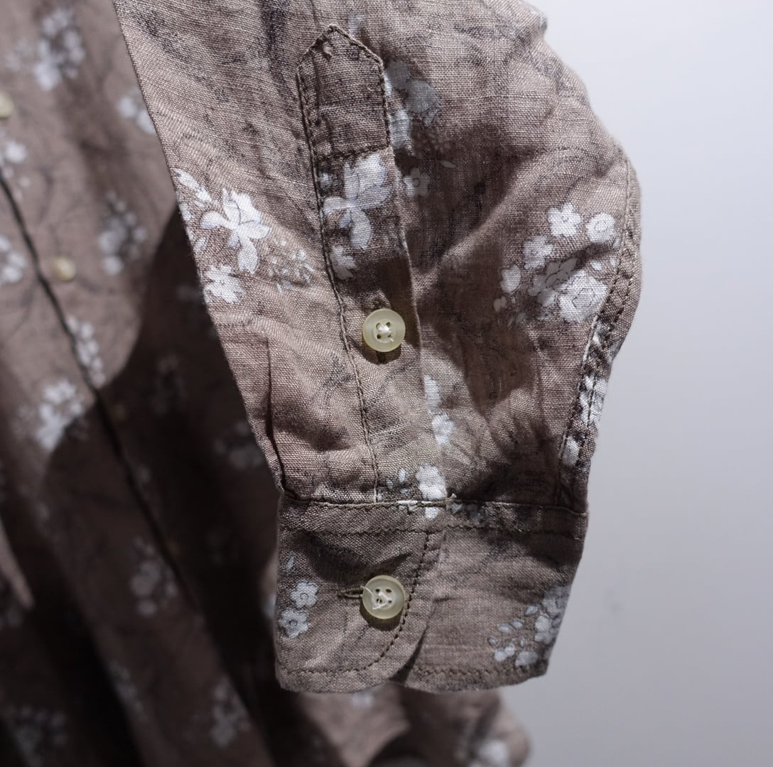 EURO Brown Flower Pattern Design Cotton Sheer Shirt