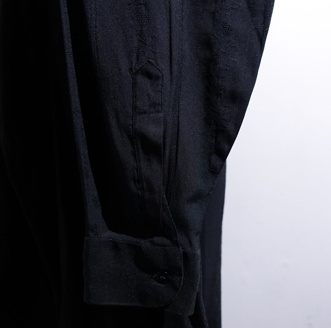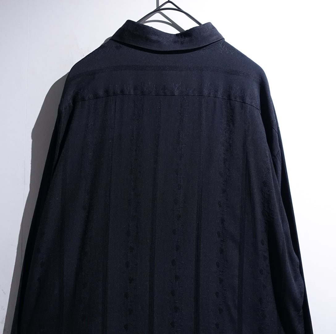 Black Botanical Jacquard Woven Design Shirt