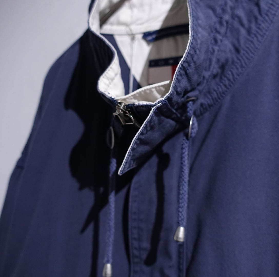 90s "TOMMY HILFIGER" Blue & White Logo Multi-Pocket Design Pullover Jacket