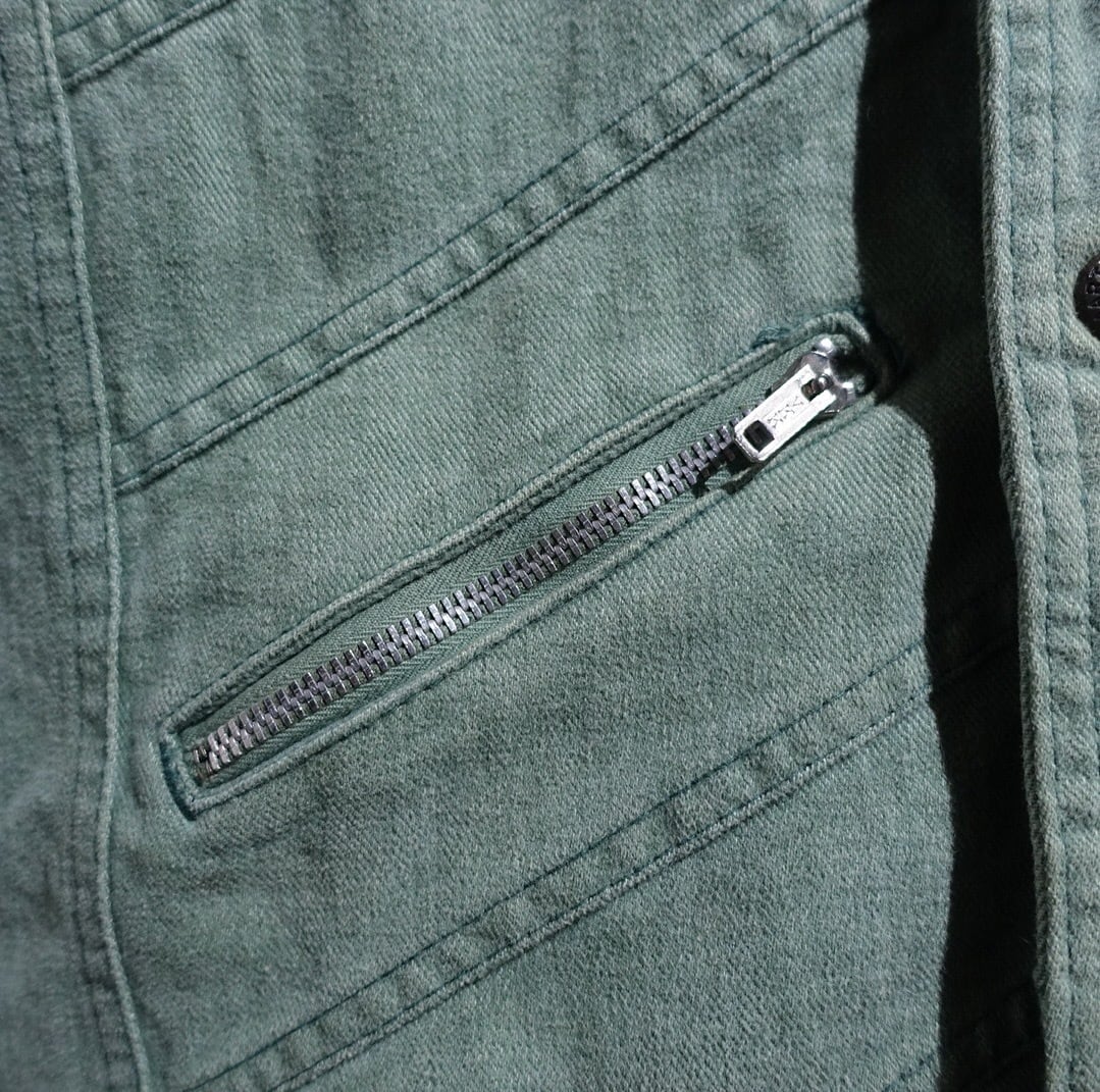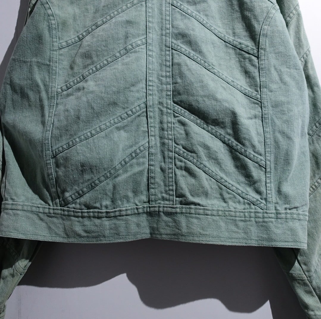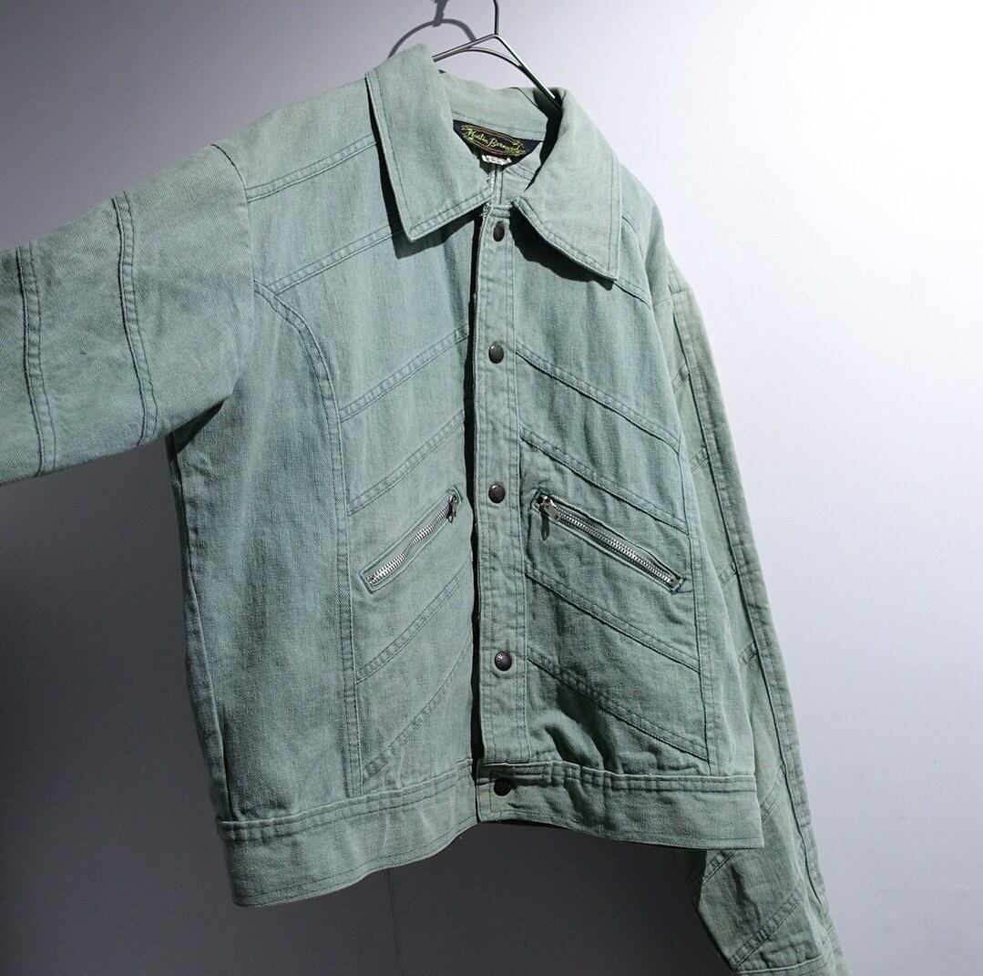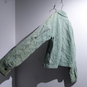 70s EURO Fade Sage Green Stitchwork Design Short Jacket