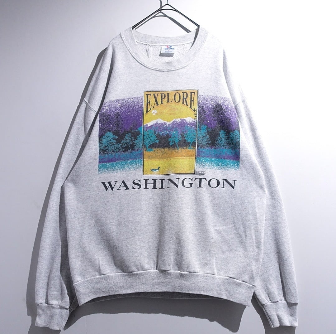 90s Grey WASHINGTON Landscape Artistic Print Sweat