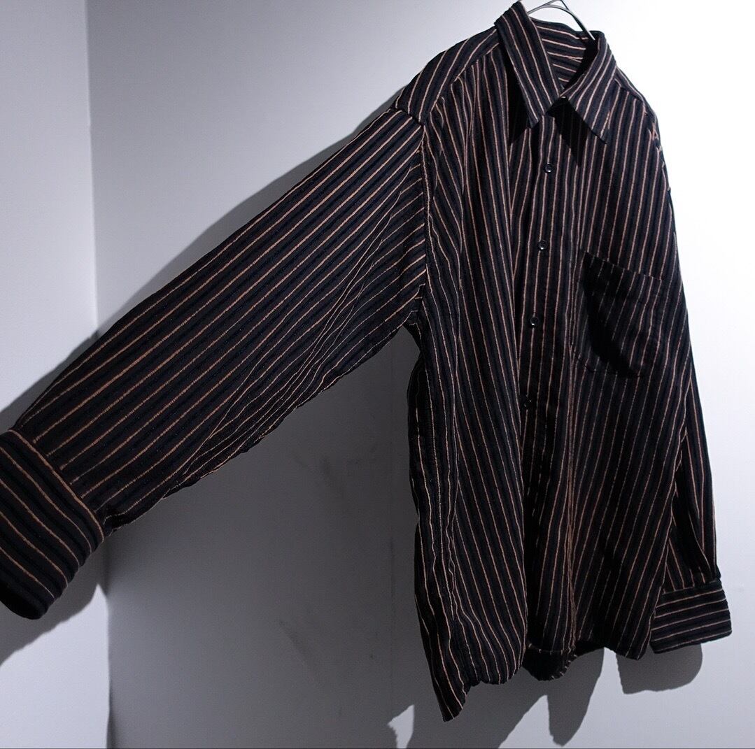 EURO Black Velour Textured Stripe Design Shirt